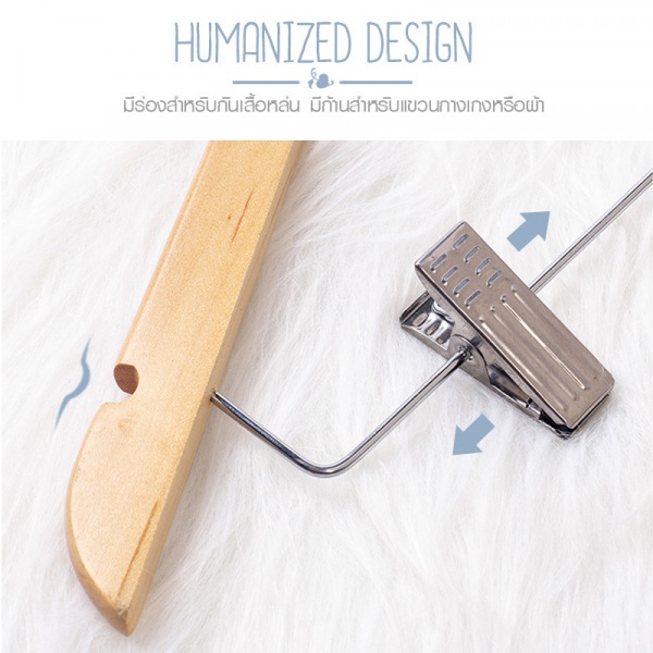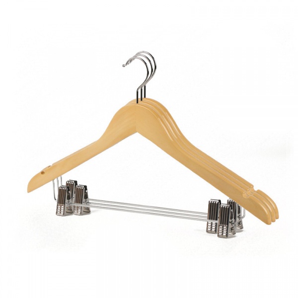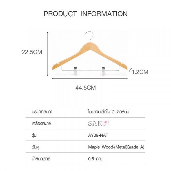 SAKU ไม้แขวนเสื้อไม้ 2 ตัวหนีบ ขนาด 44.5×1.2×25.5ซม. สีไม้ บรรจุ 3ชิ้น/แพ็ค AY09-NAT
