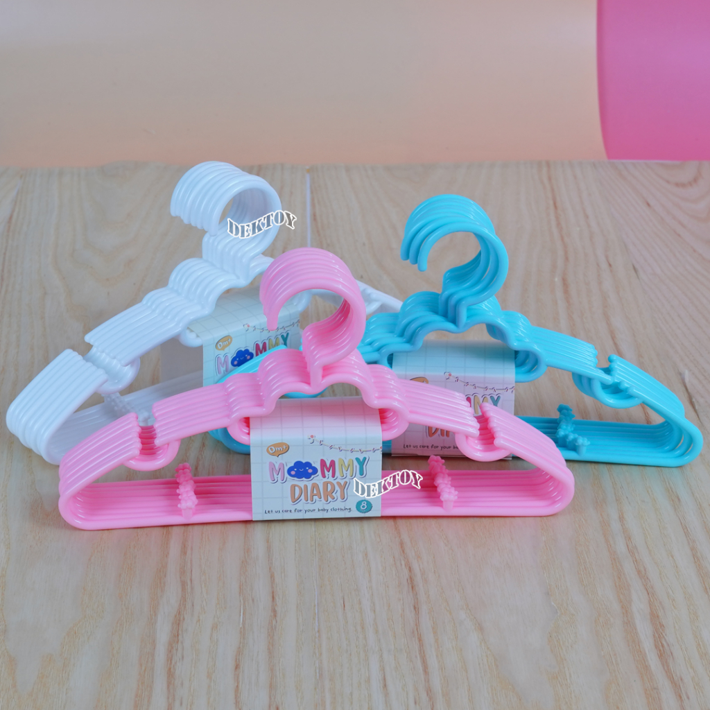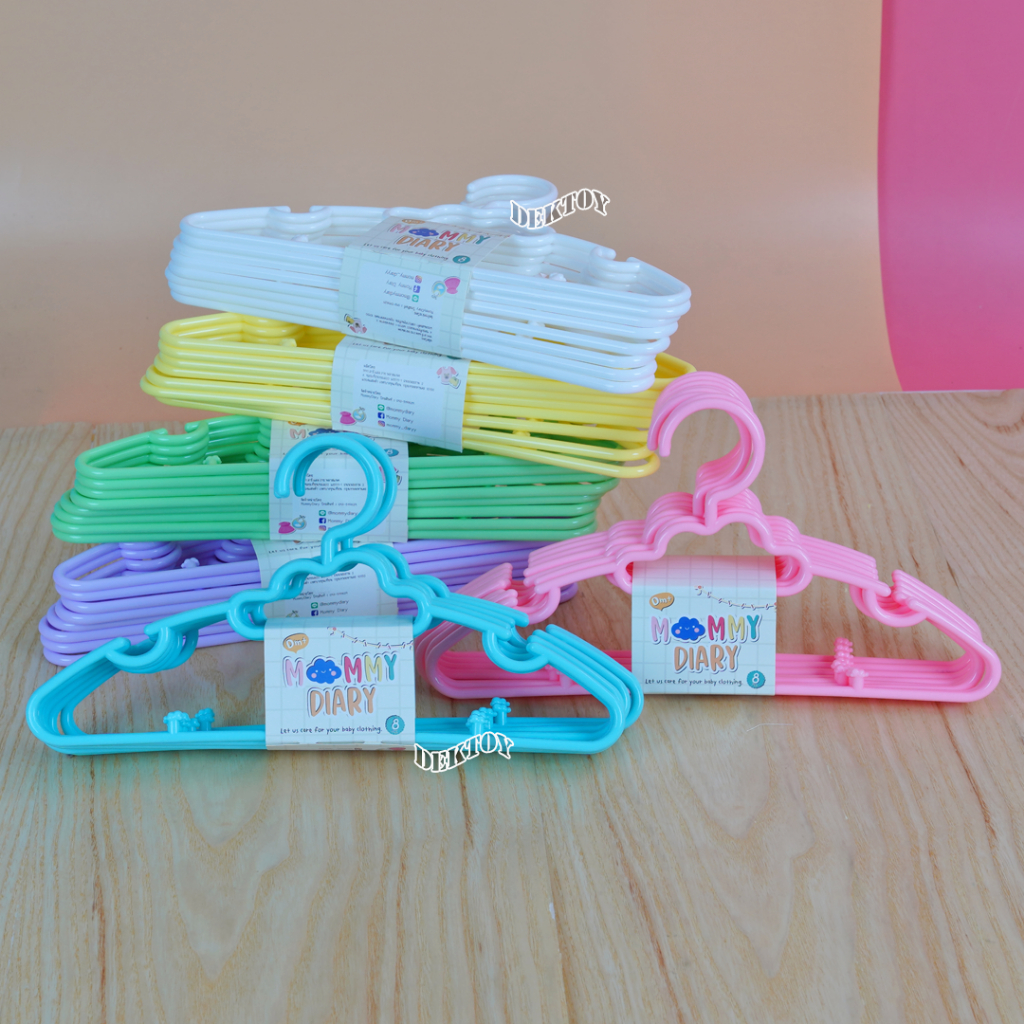 3 แพ็ค คละสี (24ชิ้น)MommyDiary ไม้แขวนเสื้อเด็ก ไม้แขวนผ้าเด็ก 1 แพ็คมี 8 ชิ้น