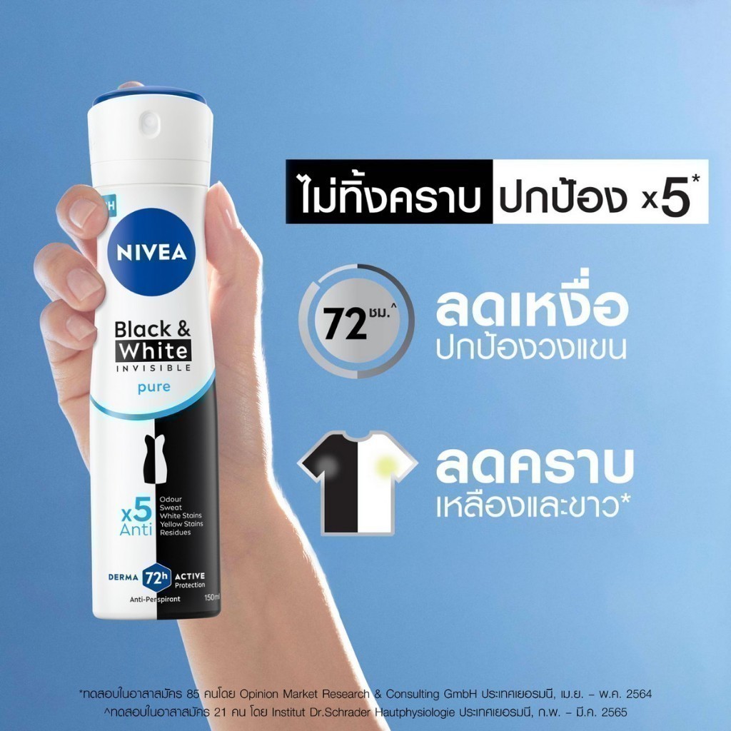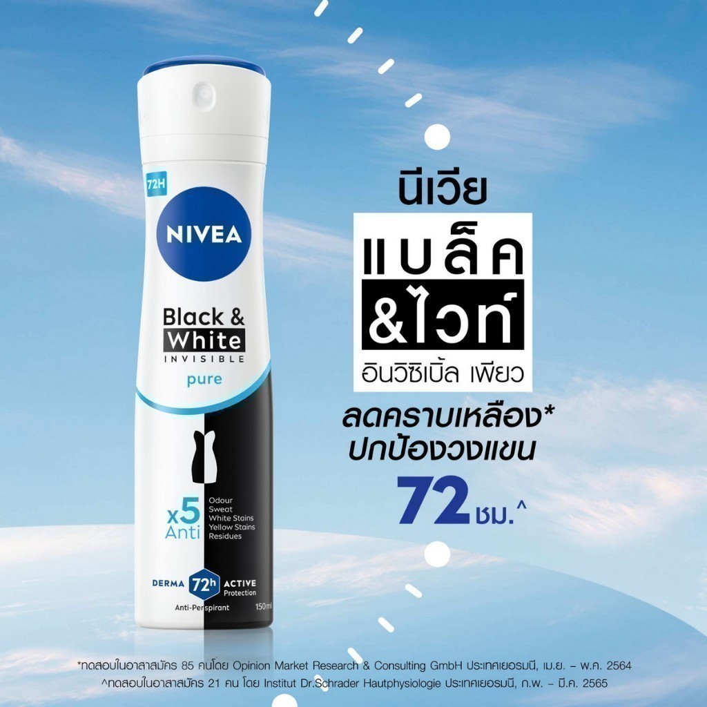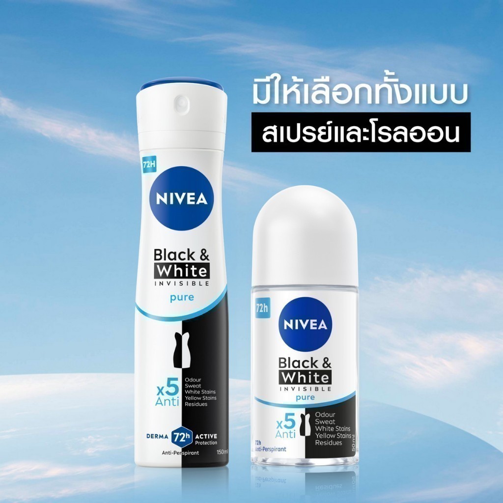 นีเวีย แบล็ค แอนด์ ไวท์ อินวิซิเบิ้ล เพียว สเปรย์ 150 มล. NIVEA สเปรย์โรลออน deodorant