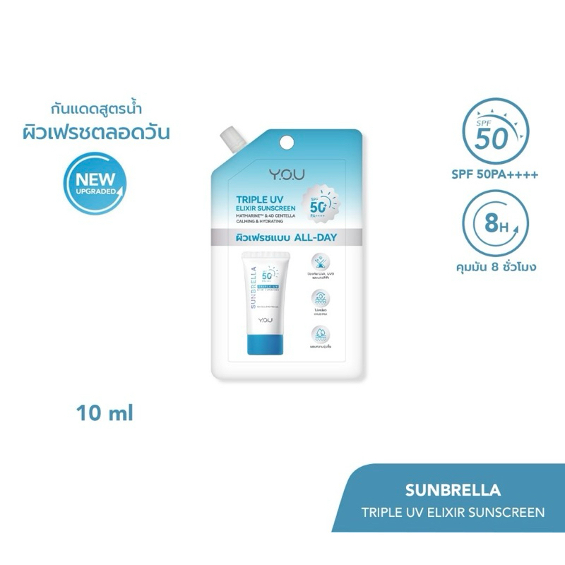 ☀️YOU Sunbrella Triple UV Elixir Sunscreen SPF50+ PA++++ กันแดดสูตรน้ำ เนื้อบางเบา ป้องกัน UVA UVB หลอด 40ml./ซอง 10ml.