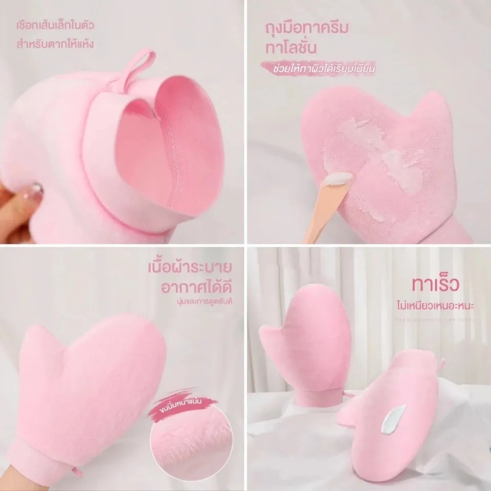 ถุงมือทาครีม ถุงมือ ถุงมือผ้า ทาครีม ถุงมือทาโลชั่น ใช้ซ้ำได้ ถุงมือสีชมพู [1ข้าง] ถุงมือทาครีม พอกผิวขาว ถุงมือพอกผิว