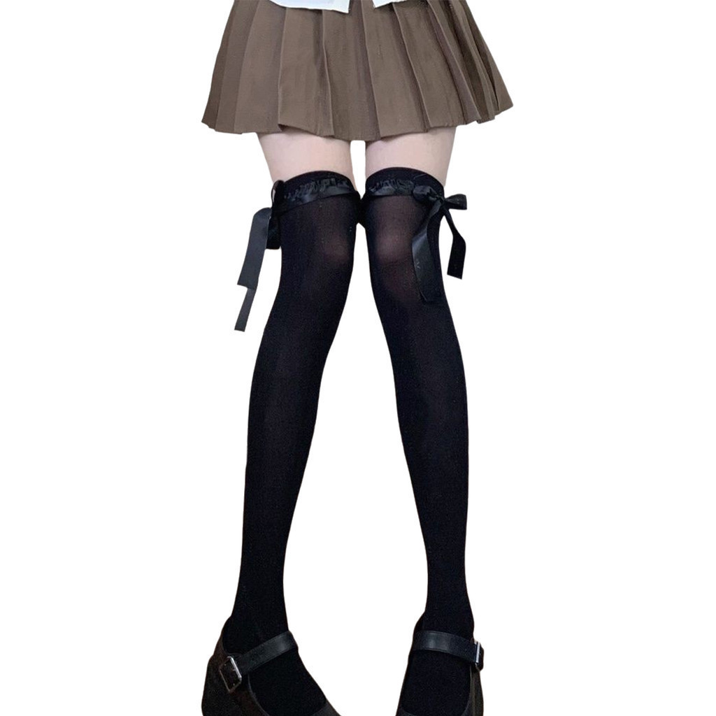 ถุงเท้าผู้หญิง Jpainese Beauty Kawaii สาวหวานลูกไม้ถุงเท้าสูงน่ารัก Cool Bow ริบบิ้นถุงเท้าเข่า, Lolita ถุงเท้า