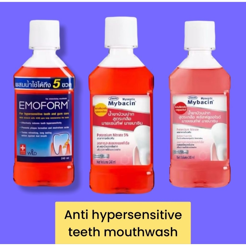 น้ำยาบ้วนปาก ลดเสียวฟันมาก อีโมฟอร์ม Emoform Mybacin mouthwash hypersensitive teeth symptom 240ml
