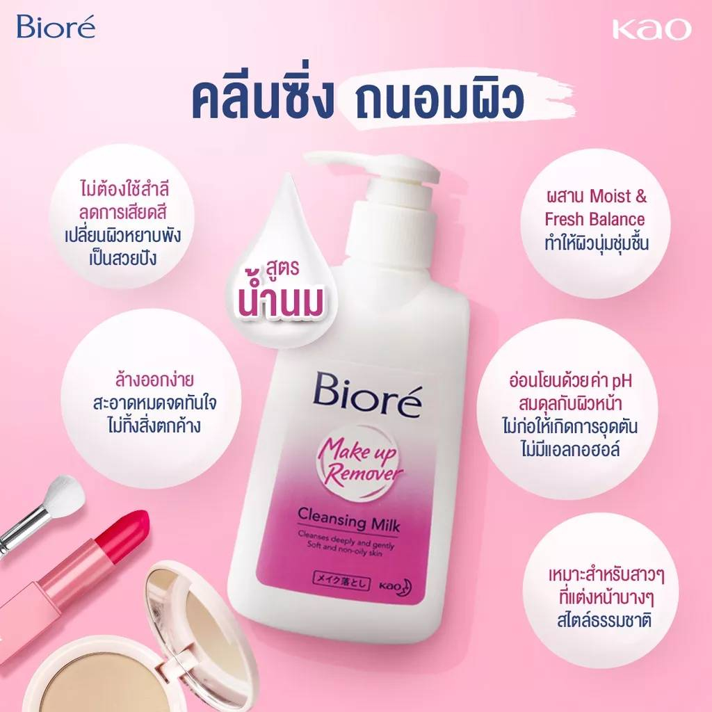 Biore Cleansing Milk 180ml บิโอเร คลีนซิ่ง มิลค์ ล้างเมคอัพสะอาดหมดจด อ่อนโยน.