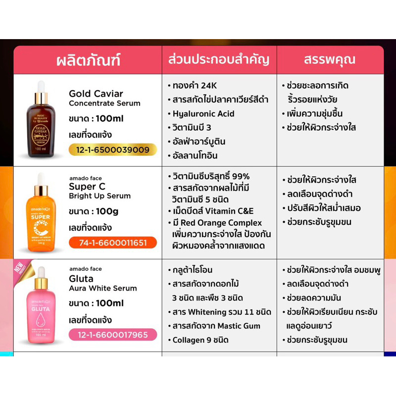 Amado Gold Caviar Serum + Amado Face Super C Bright Up Serum + Amado Face Gluta Aura White Serum (1 ชุด)
