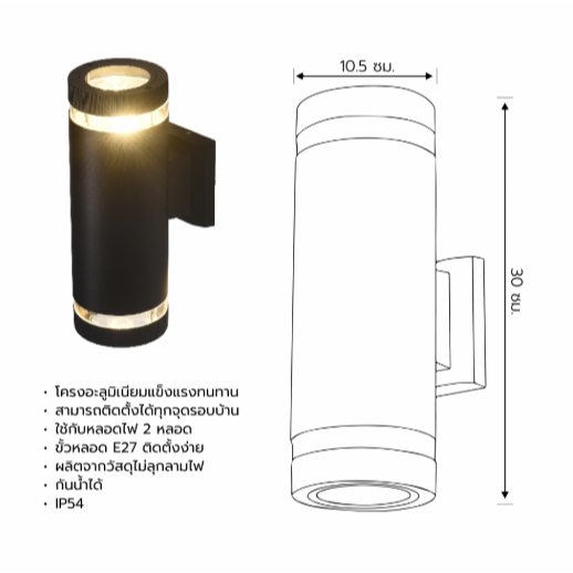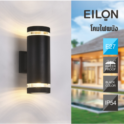 EILON โคมไฟผนัง 10.8x10.8x30 cm รุ่น MVW032-D(B) สีดำ