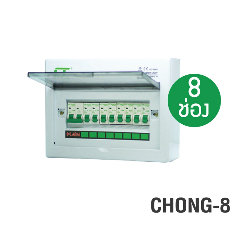 CT ELECTRIC รุ่น CHONG-8 ตู้คอนซูมเมอร์ยูนิต 8 ช่อง มอก.1436-2540 เมน 2P63A พร้อมลูก32A,32A,20A,20A,16A,16A,10A,10A