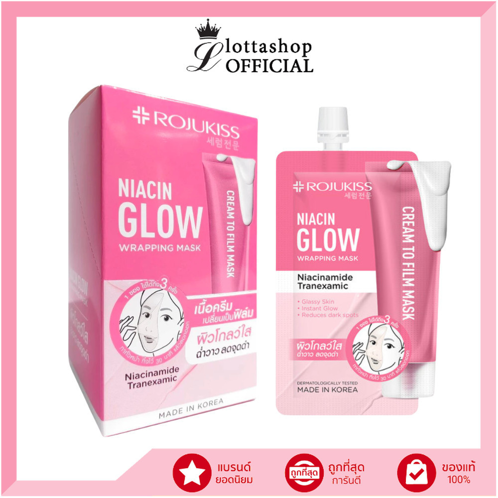 🔥แท้/ดีลสุดคุ้ม/ไลฟ์ทุกวัน🔥(กล่องx6ซอง) Rojukiss Niacin Glow Wrapping Mask 10ml (M)