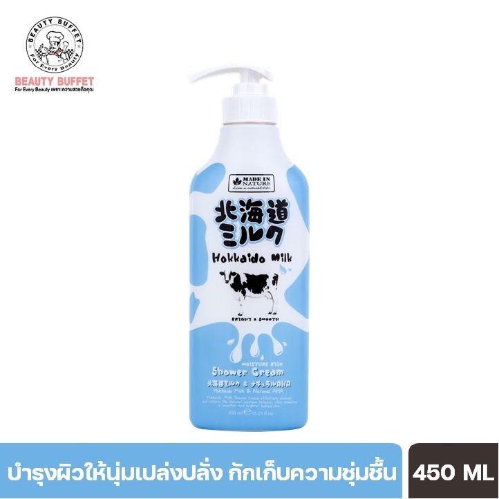 BEAUTY BUFFET Made in Nature Hokkaido Milk Shower Cream - เมด อิน เนอเจอร์ ครีมอาบน้ำสูตรนมวัวฮอกไกโด (450 ml)