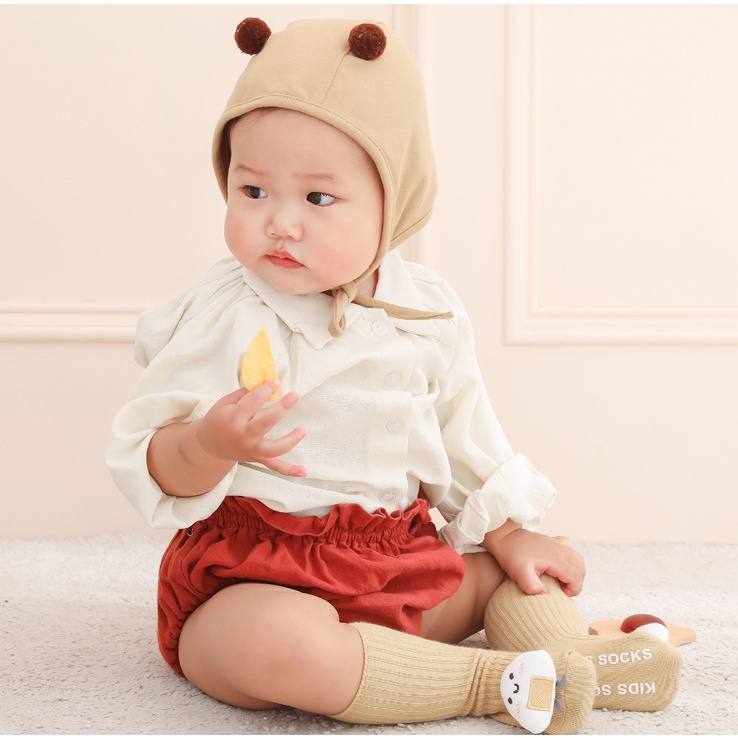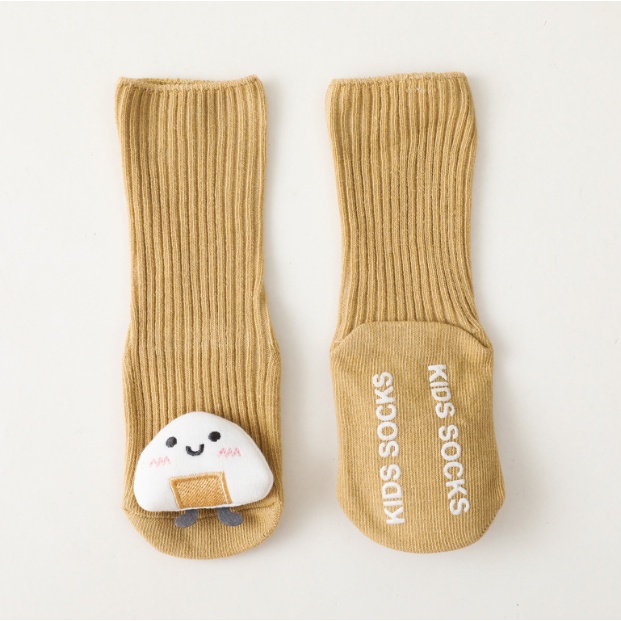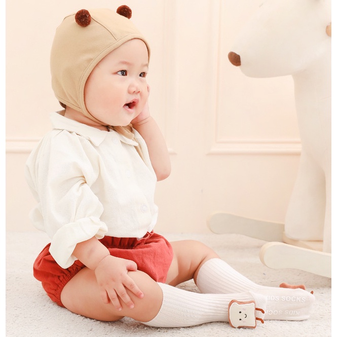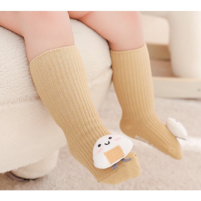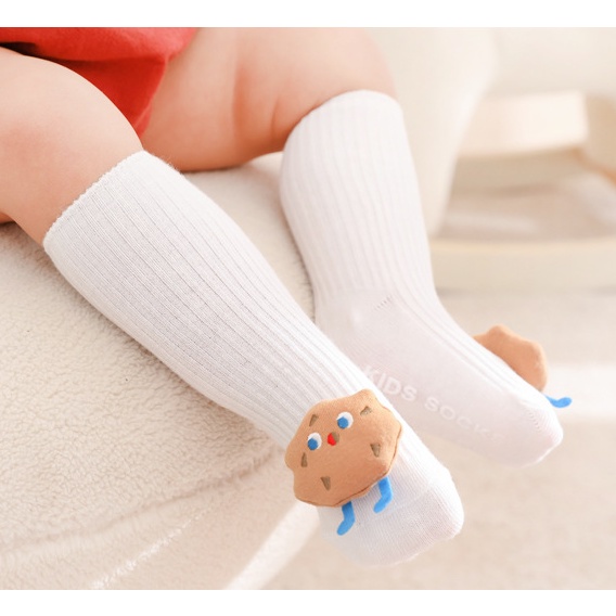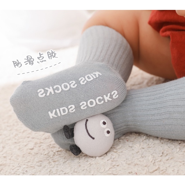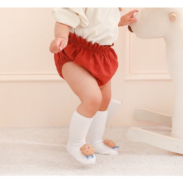 SALE !! ถุงเท้าเด็ก (sk73) - ถุงเท้าเด็กข้อสูงสีพื้น ติดตุ๊กตานูนน่ารัก ๆ