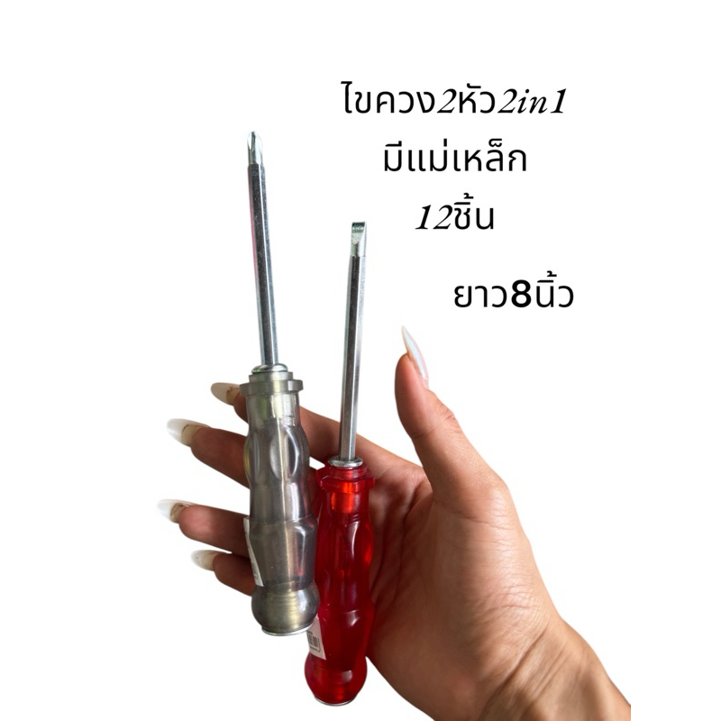 ไขควง 2in1 แฉก+แบน ยาว 8 นิ้ว | หัวแม่เหล็ก ขนาด 5 มม. | ยกกล่อง 12 ชิ้น คุ้มสุด!