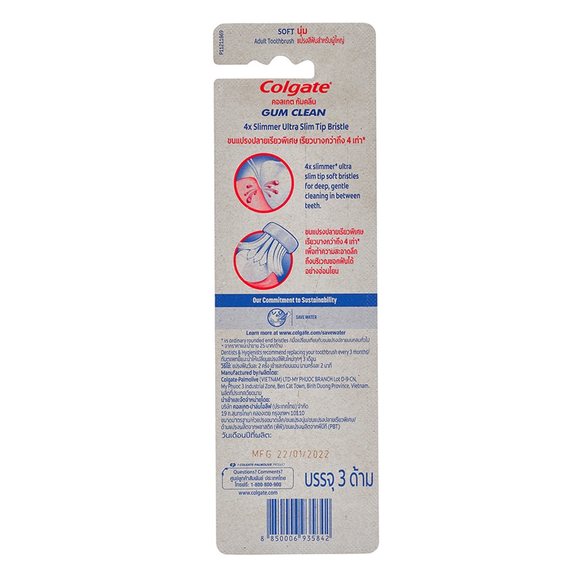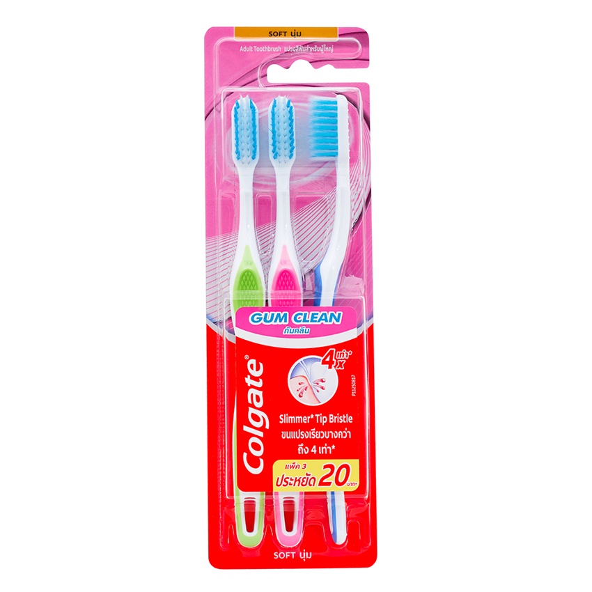 คอลเกต แปรงสีฟัน กัม คลีน ขนแปรงนุ่ม แพ็ค 3 (คละสี) COLGATE GUM CLEAN PACK 3 (ASSORTED COLORS)