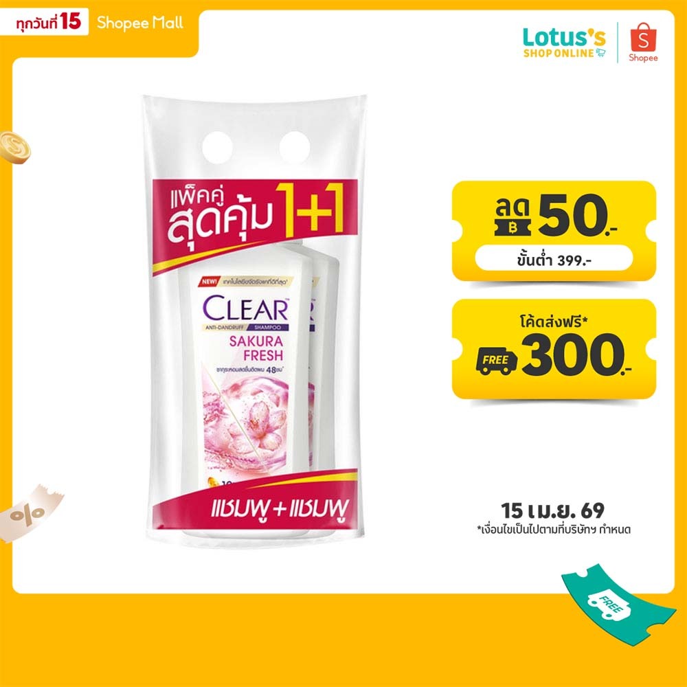 เคลียร์ แชมพูขจัดรังแค ซากุระ เฟรช 370 มล.X2 CLEAR SHAMPOO SAKURA FRESH370ML.TWINPACK