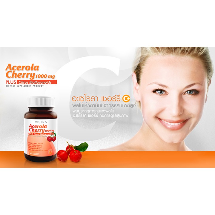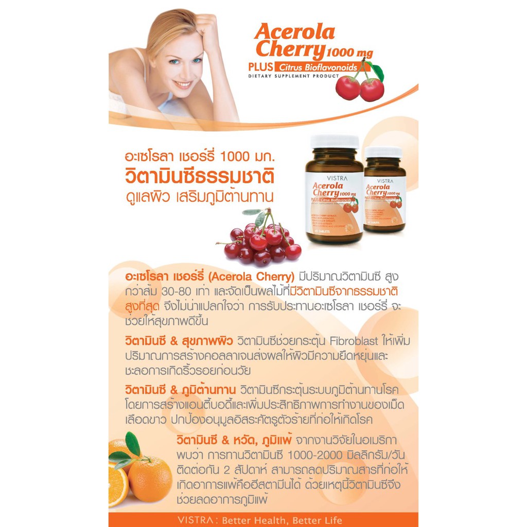 วิตามินซี Vistra Acerola Cherry 1,000 mg. วิสทร้า อะเซโร ลาเชอร์รี่ 1,000 มก.