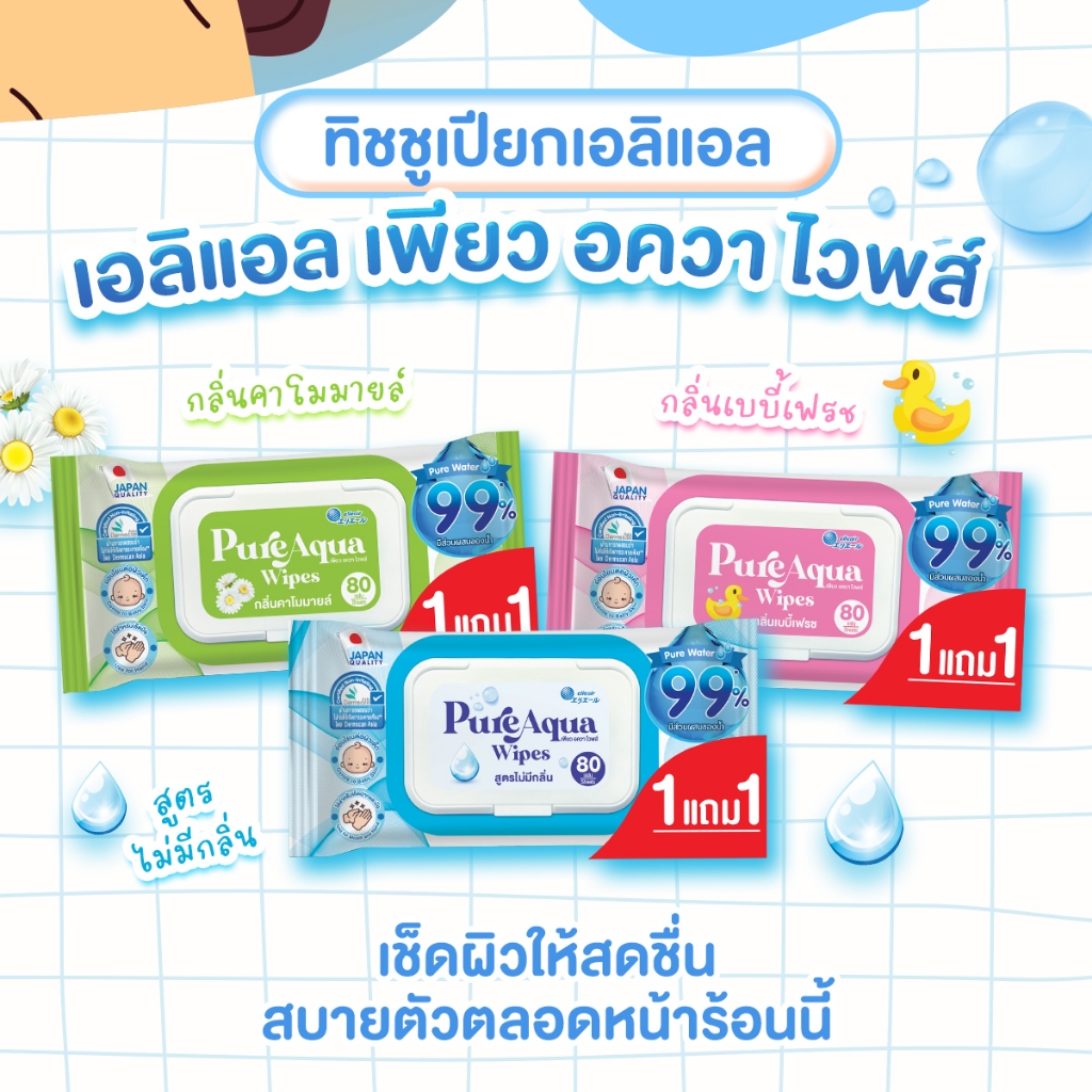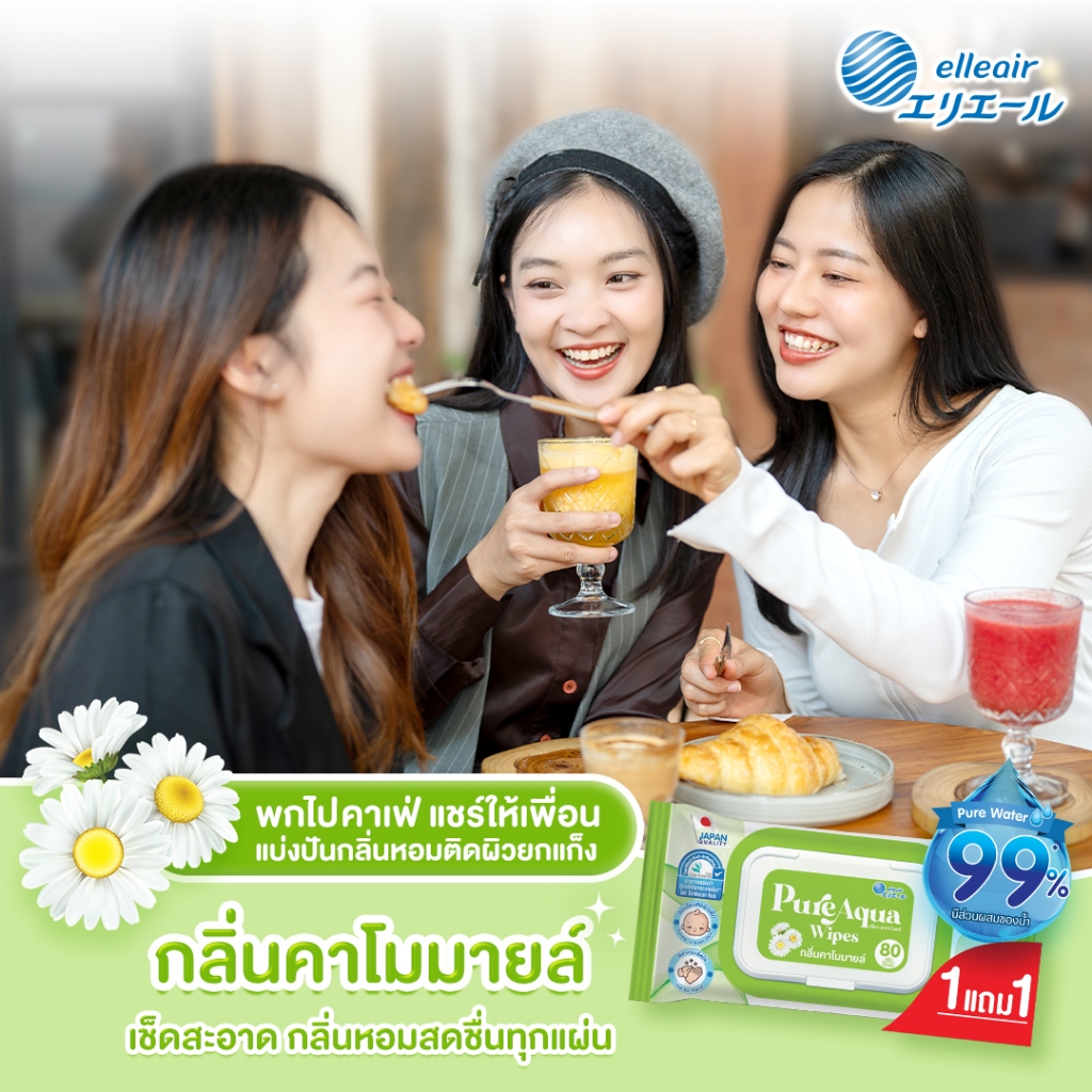 เอลิแอล เพียว อควา ไวพส์ ทิชชู่เปียก กลิ่นคาโมมายล์ 80 แผ่น/Elleair Pure Aqua Wipes Chamomile scent 80Sx2P