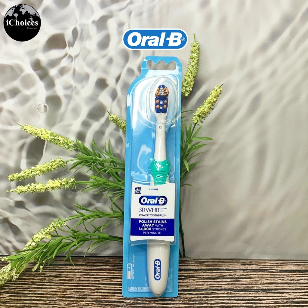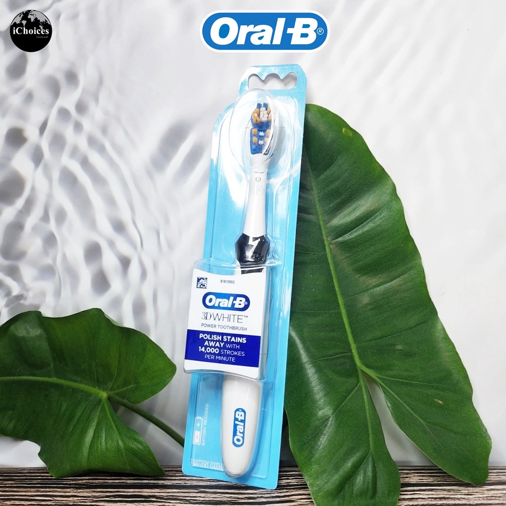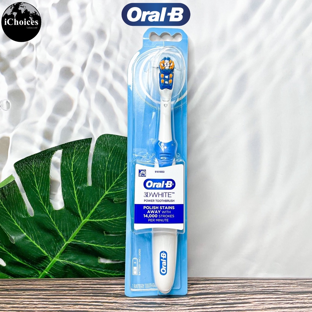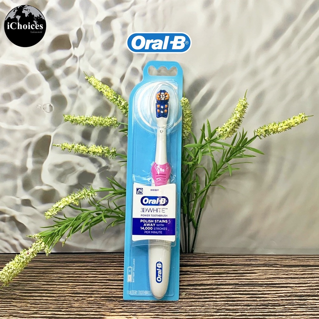 [Oral-B] 3D White Power Toothbrush Polish Stains Away with 14,000 Strokes Per Minute ออรัลบี แปรงสีฟันแบตเตอรี่