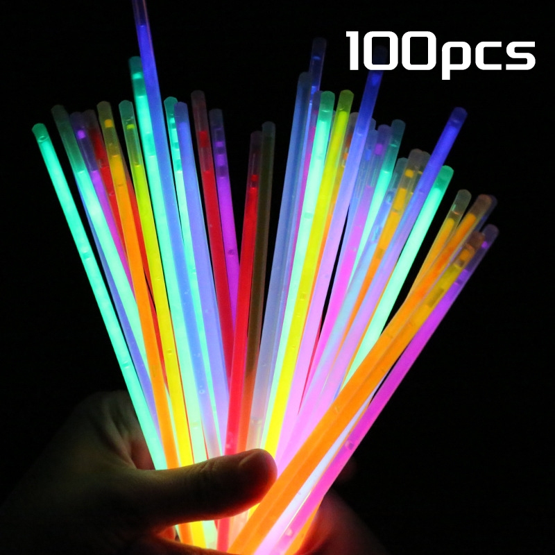 แท่งเรืองแสง 100 pcs แค่หักก็เรืองแสงแล้ว แท่งไฟ คละสี แต่งตัวตามเทศกาล อุปกรณ์วันหยุด Glow Sticks