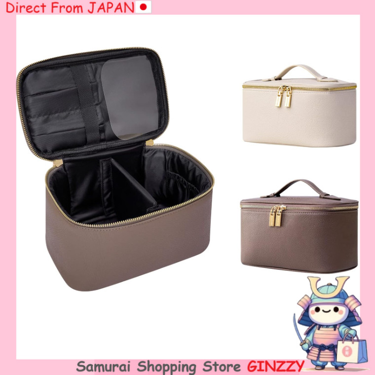 ROWNYEON กระเป๋าเครื่องสำอางขนาดใหญ่ กระเป๋า Vanity กันน้ำ สีน้ำตาล/ขาว ผลิตภัณฑ์ความงามจากญี่ปุ่น