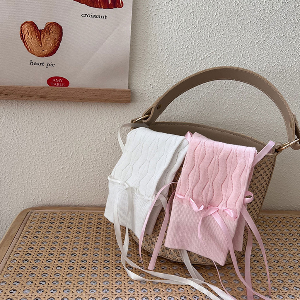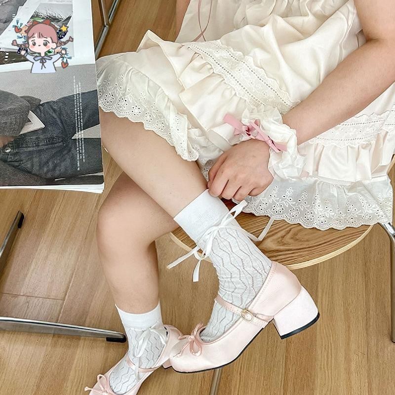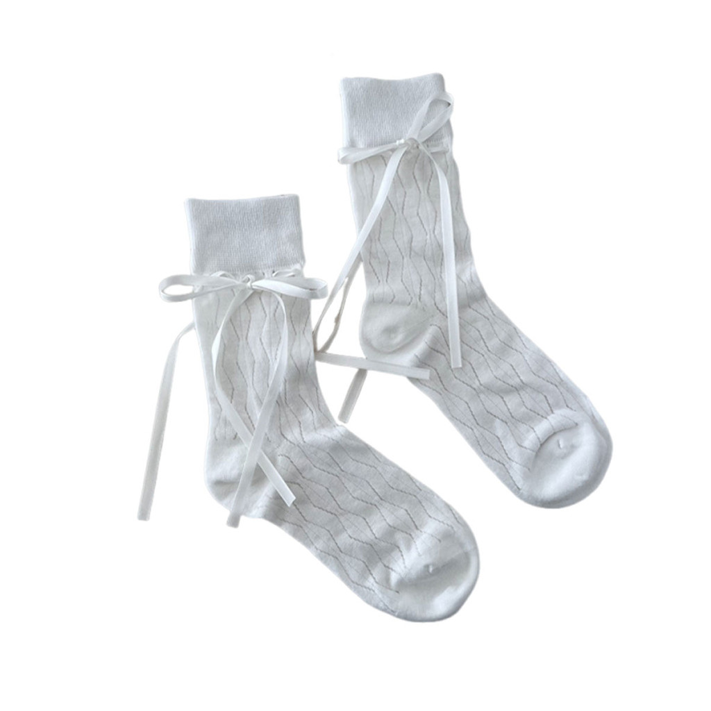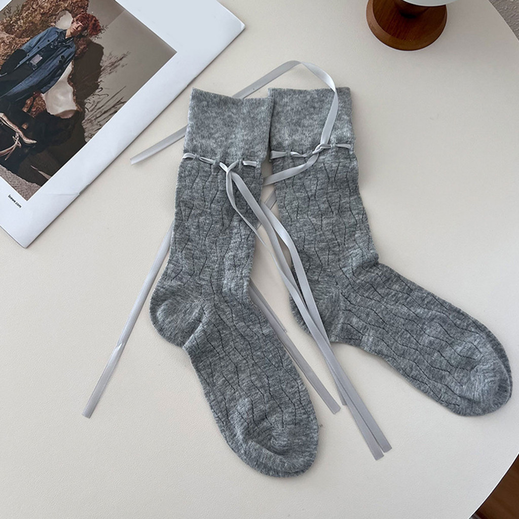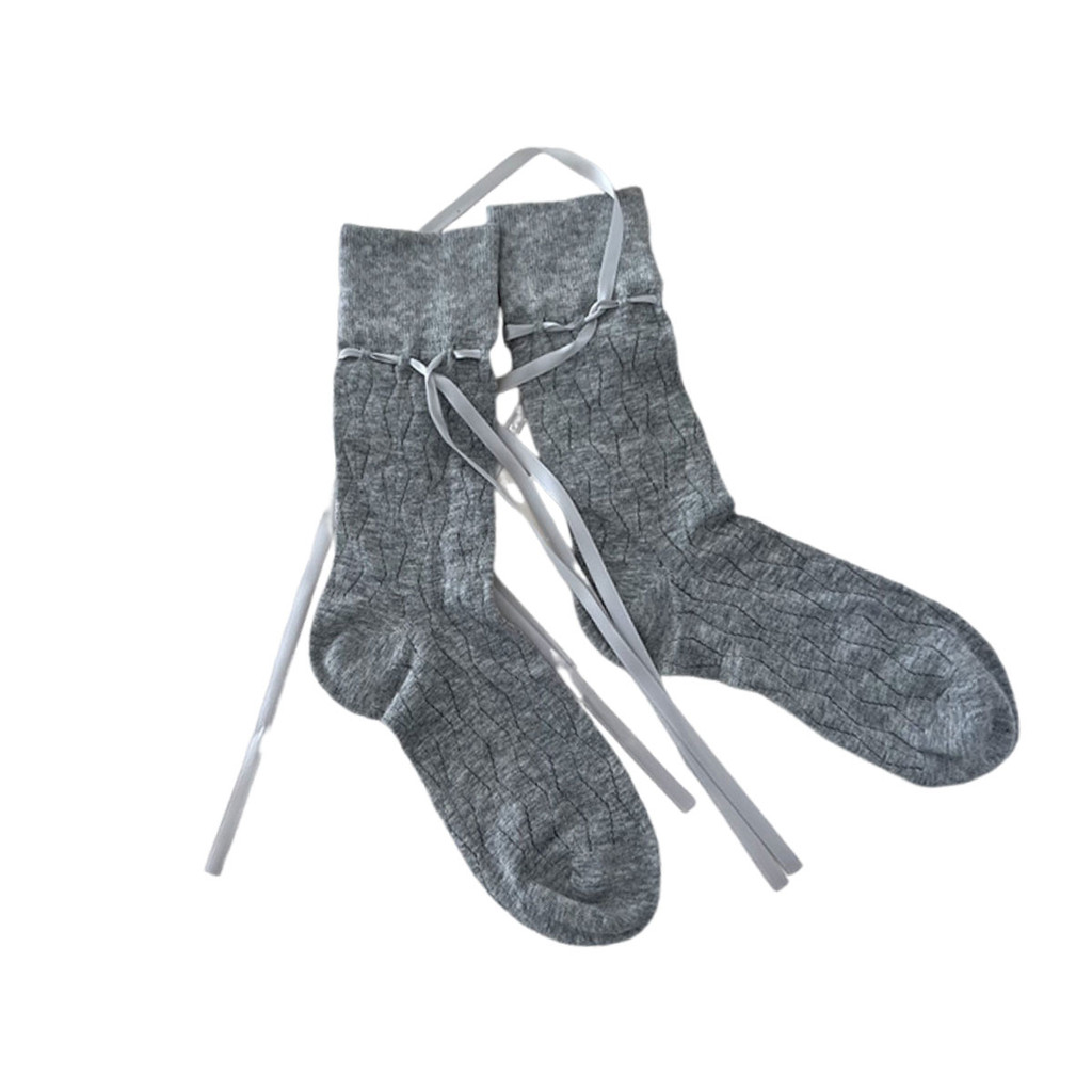 ถุงเท้าข้อกลางสำหรับผู้หญิง พร้อมสายรัดโบว์ปรับระดับได้