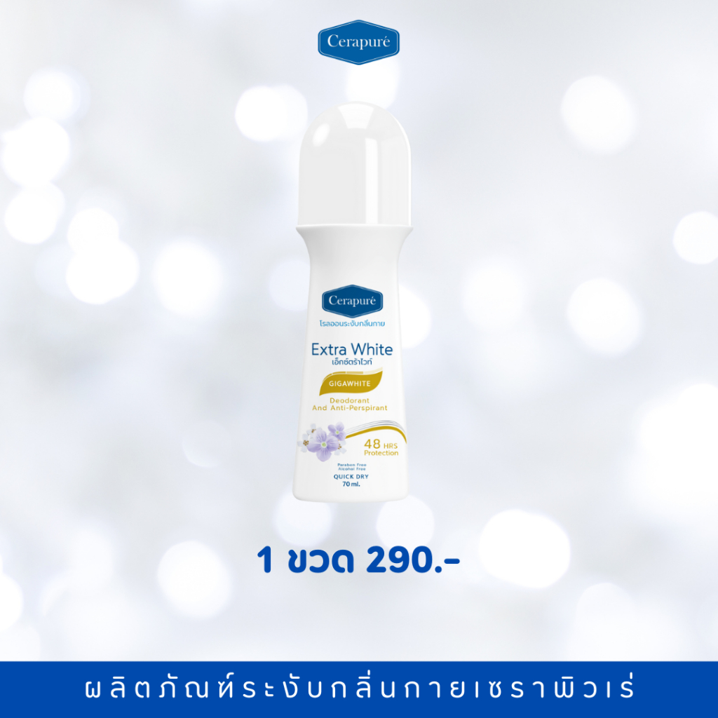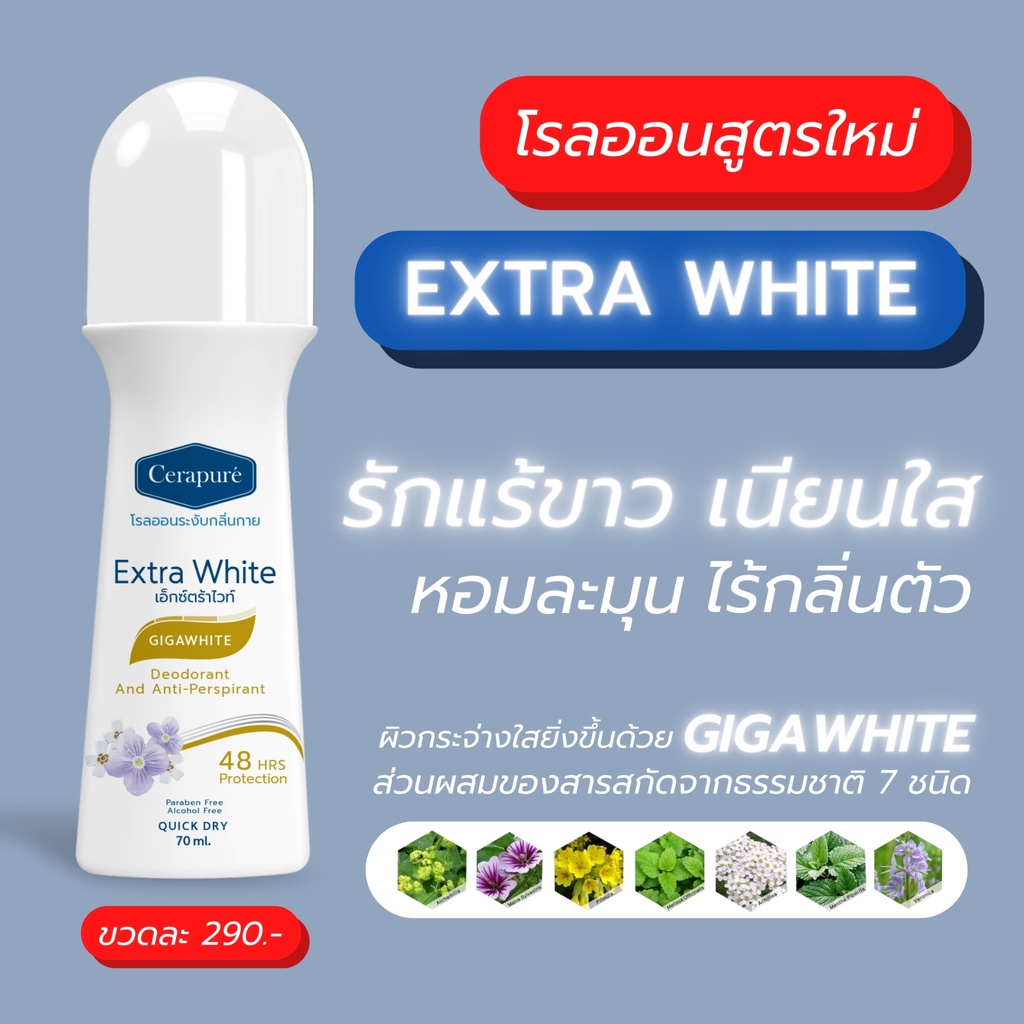 Cerapure โรลออนดับกลิ่นกาย สูตรใหม่ Extra White ฝาสีขาว