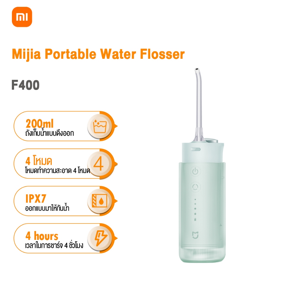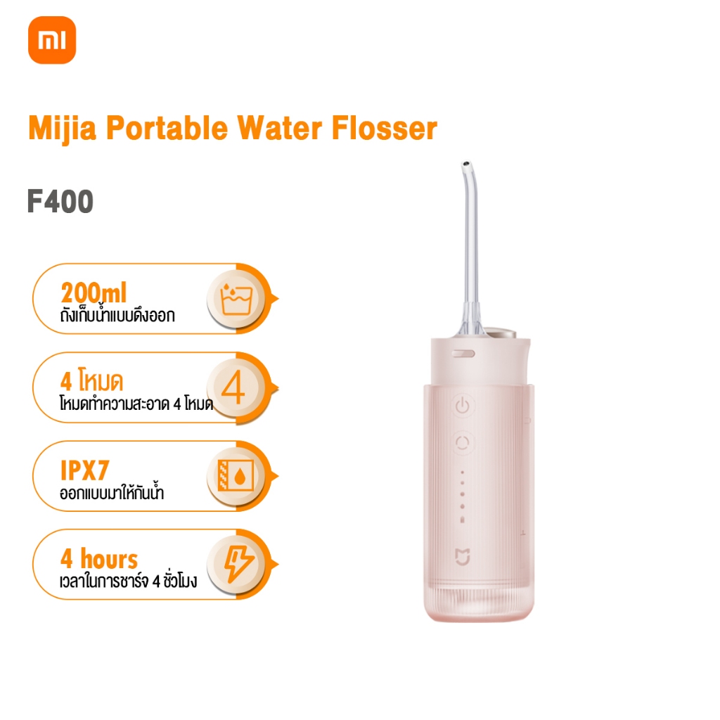 Xiaomi Mijia Portable Water Flosser F400 เครื่องล้างฟันแบบพกพา 200 มล. 4 โหมด 3 หัวฉีด IPX7 กันน้ำ เครื่องทำความสะอาดฟัน