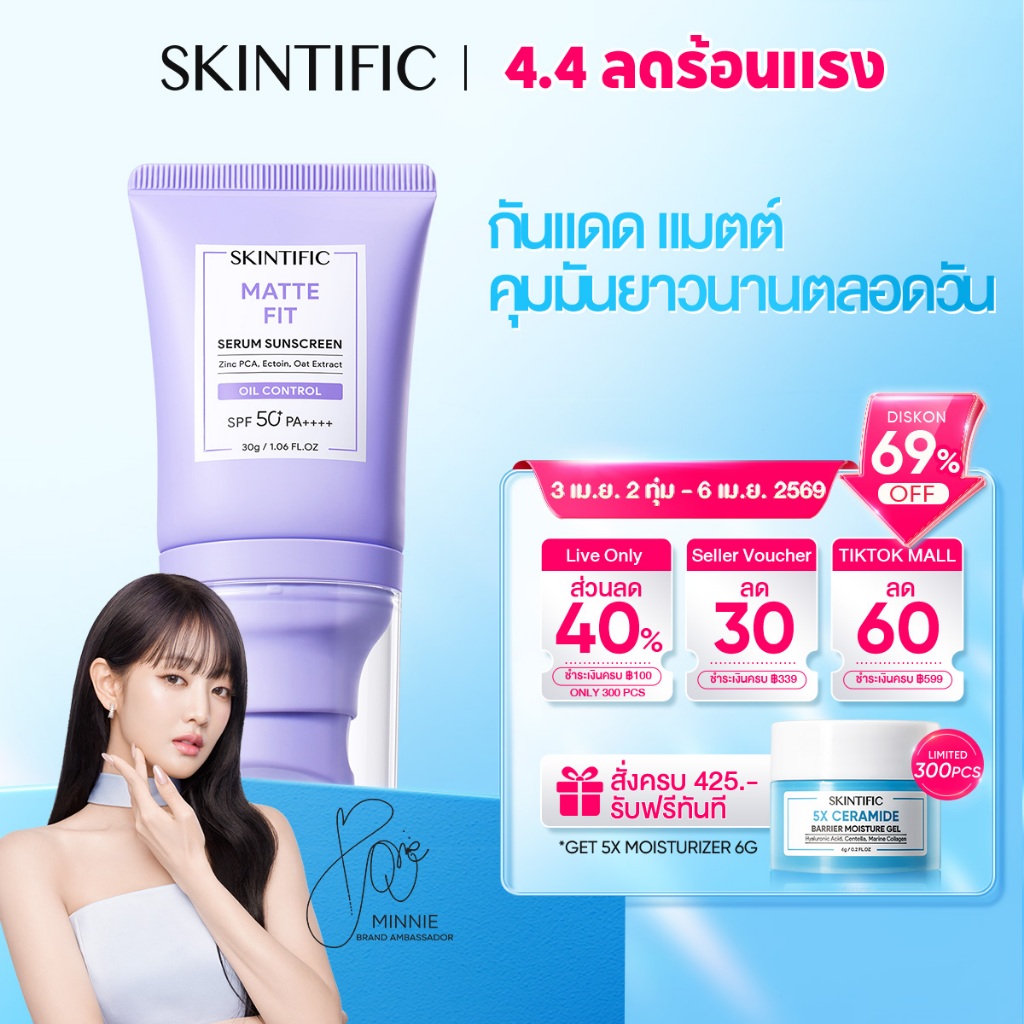 SKINTIFIC- Matte Fit Serum Sunscreen SPF50+PA++++ กันแดด ครีมกันแดด ครีมกันแดด ปกป้องผิวจากรังสีUVA UVB กันแดดตัว