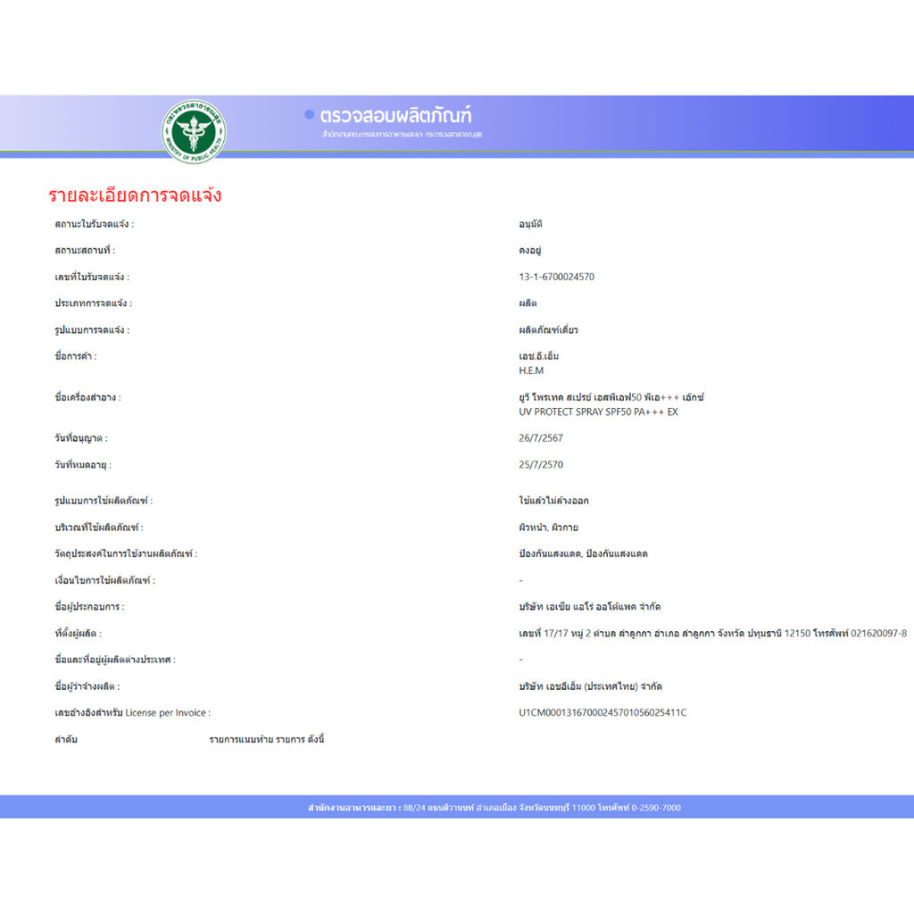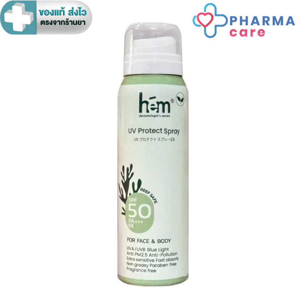 H.E.M UV Protect Spray SPF 50 PA+++ เอชอีเอ็ม สเปรย์กันแดด ผิวหน้าและผิวกาย 100 มล. [PC]