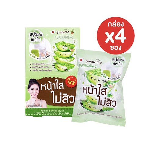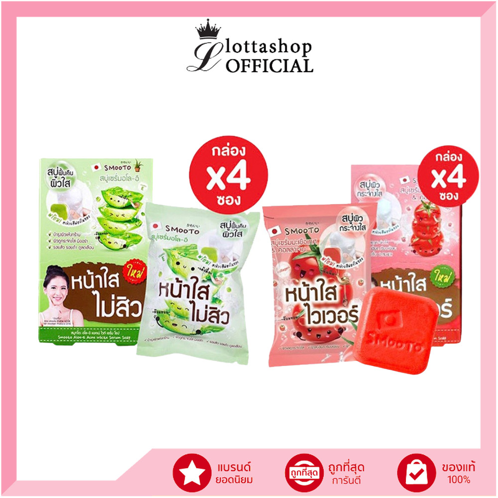 🔥กล่องx4ก้อน🔥Smooto Serum Soap Aloe - E Acne White Serum Soap / Colagen Whitening Serum Soap 60 กรัม