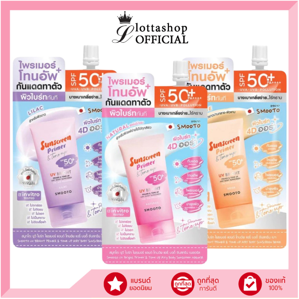 🔥แท้/ดีลสุดคุ้ม/ไลฟ์ทุกวัน🔥(1ซอง) Smooto UV Bright Primer & Tone Up Airy Body Sunscreen SPF50+ PA++++ กันแดด (M)