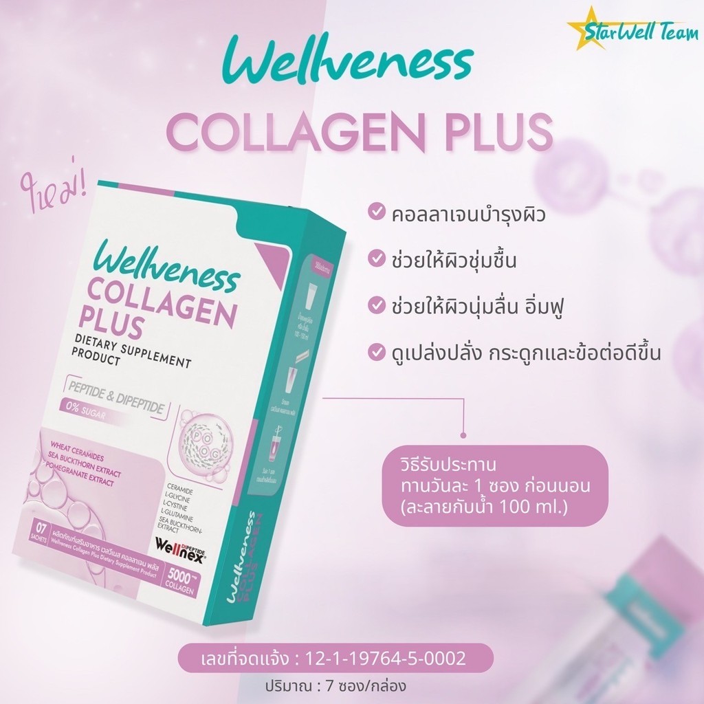 (ของแท้+ตัวแทนบริษัท) Wellveness Collagen Plus Wellnex เวลวีเนส คอลลาเจน พลัส บำรุงผิว กระดูก ข้อต่อ
