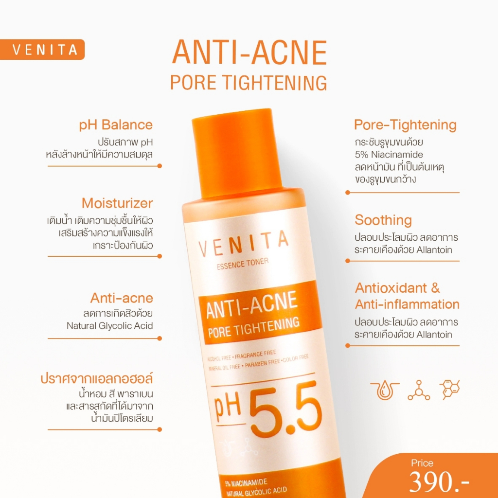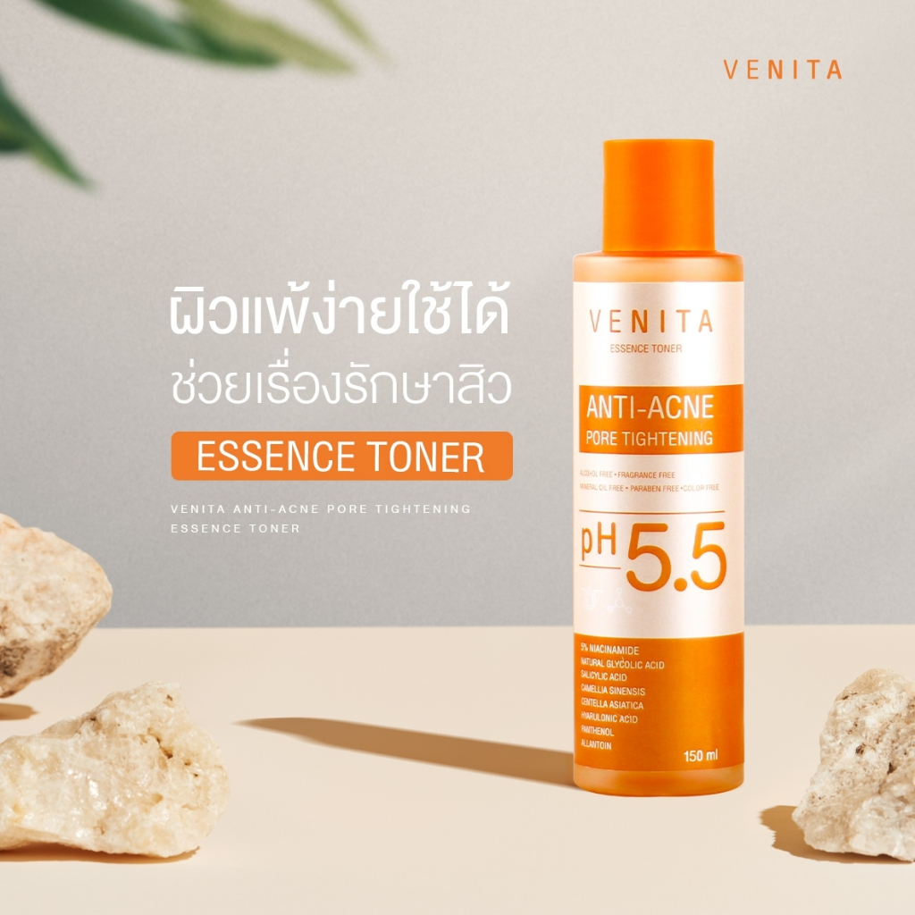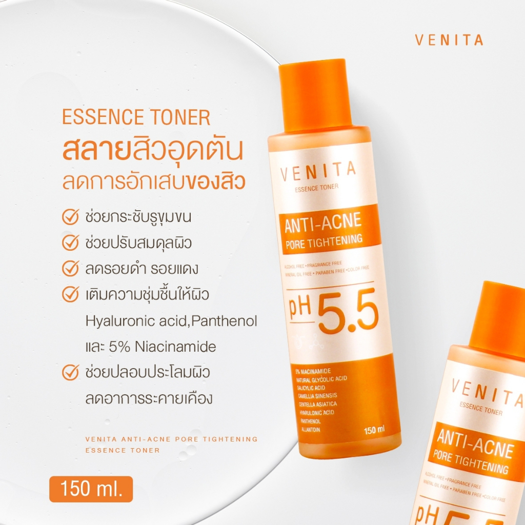 [เอสเซนส์โทนเนอร์ลดสิว] VENITA ANTI-ACNE PORE TIGHTENING ESSENCE TONER 150 MLโทนเนอร์เวนิต้า สำหรับคนเป็นสิว ผิวแพ้ง่าย