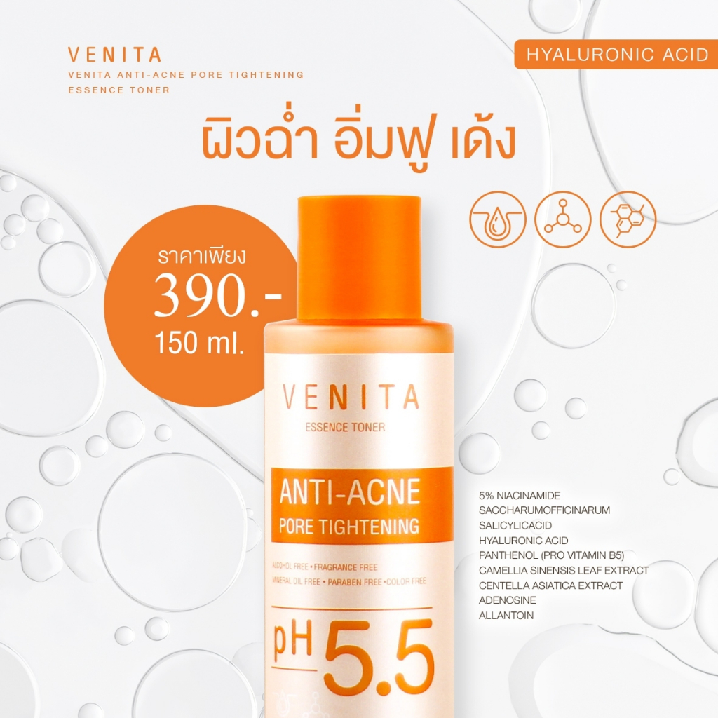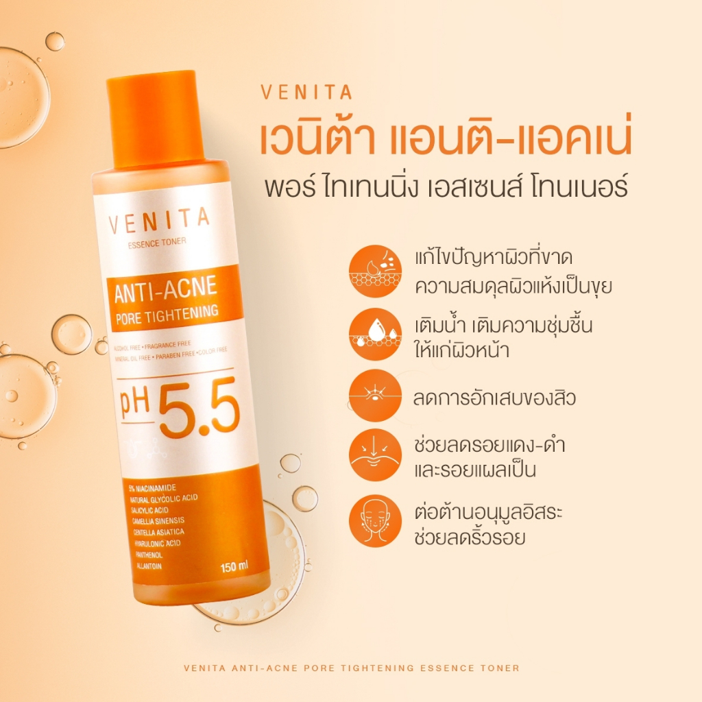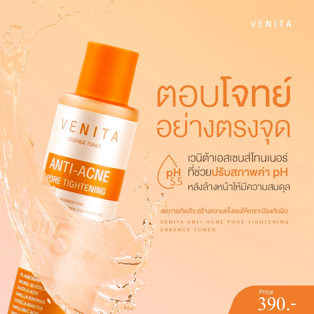[เอสเซนส์โทนเนอร์ลดสิว] VENITA ANTI-ACNE PORE TIGHTENING ESSENCE TONER 150 MLโทนเนอร์เวนิต้า สำหรับคนเป็นสิว ผิวแพ้ง่าย