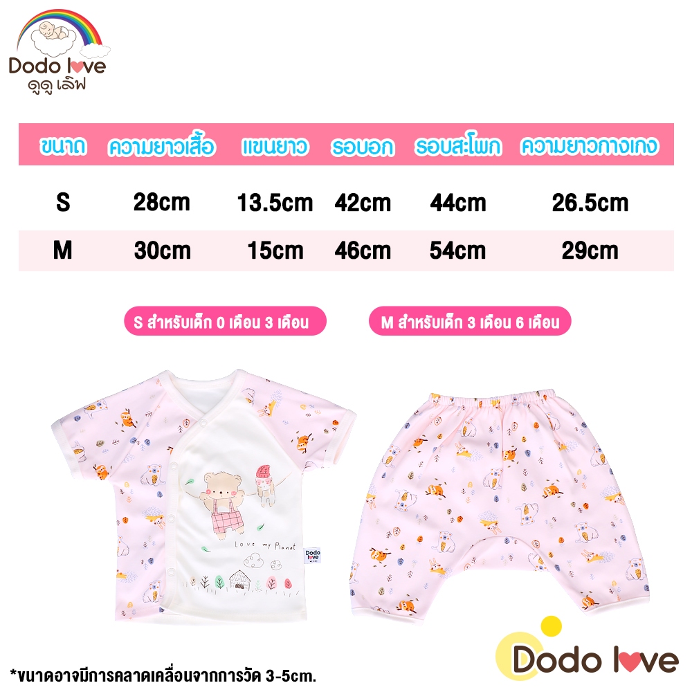 DODOLOVE ชุดเด็กแรกเกิด-6เดือน เสื้อสแนป + กางเกงต่อเป้าสามส่วน