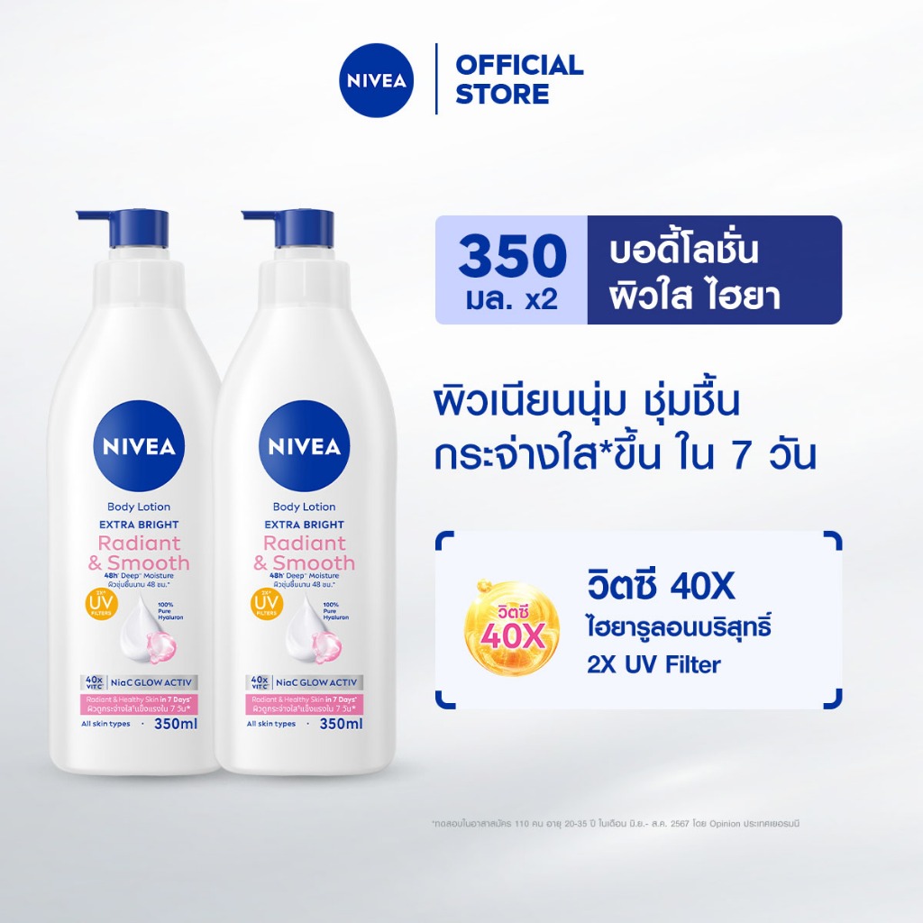 นีเวีย เอ็กซ์ตร้า ไบรท์ เรเดียนท์ แอนด์ สมูท บอดี้ โลชั่น 350 มล. 2 ชิ้น NIVEA