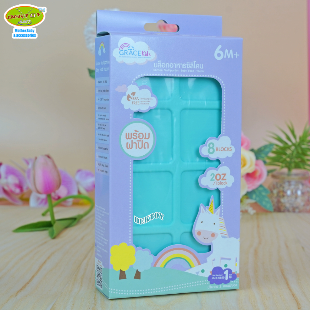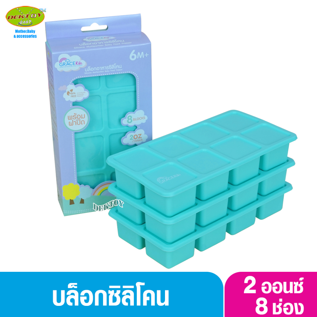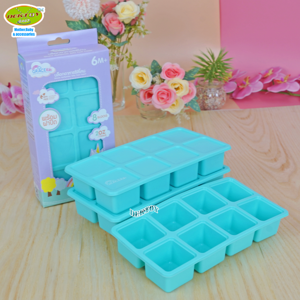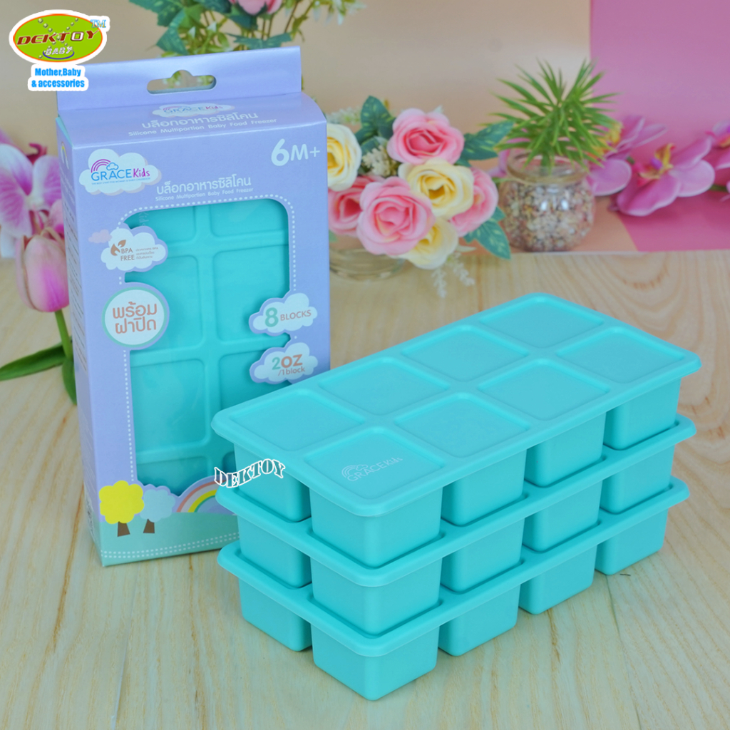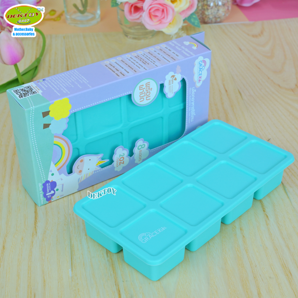 Gracekids เกรซคิดส์ บล็อคซิลิโคนแช่อาหาร บล็อคเก็บอาหารซิลิโคนบล็อคเหลี่ยม 8 ช่อง