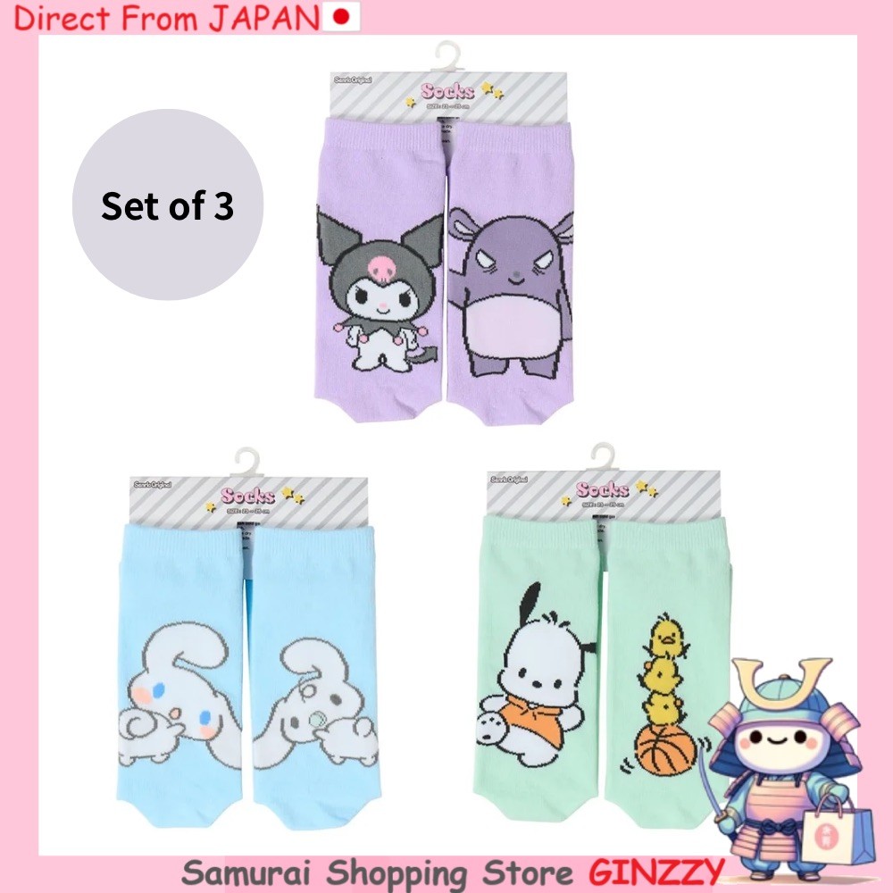 [ชุด 3 คู่] ถุงเท้าความยาวครึ่งแขนซานริโอ 23-25 ซม. สำหรับอายุ 12 ปีขึ้นไป, ฝ้าย 71% Japan Fashion