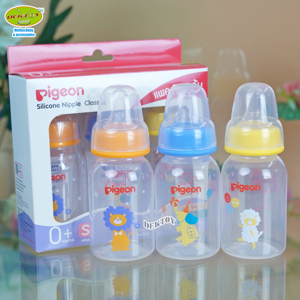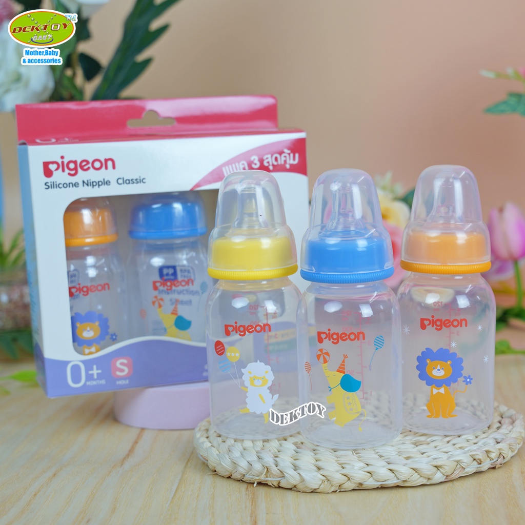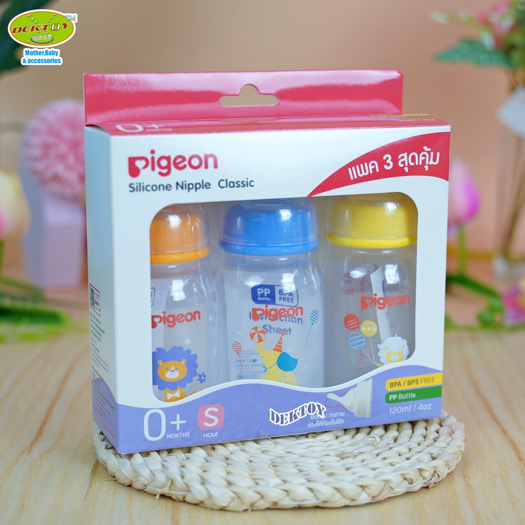 แพค 3 ขวด Pigeon พีเจ้น ขวดนมคอมาตรฐาน RPP เซอคัส 4 ออนซ์ มาพร้อมจุกคลาสสิค ขนาด S