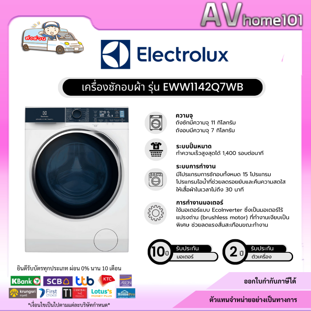 ELECTROLUX เครื่องซักอบ รุ่น EWW1142Q7WB ขนาด 11/7 กก.