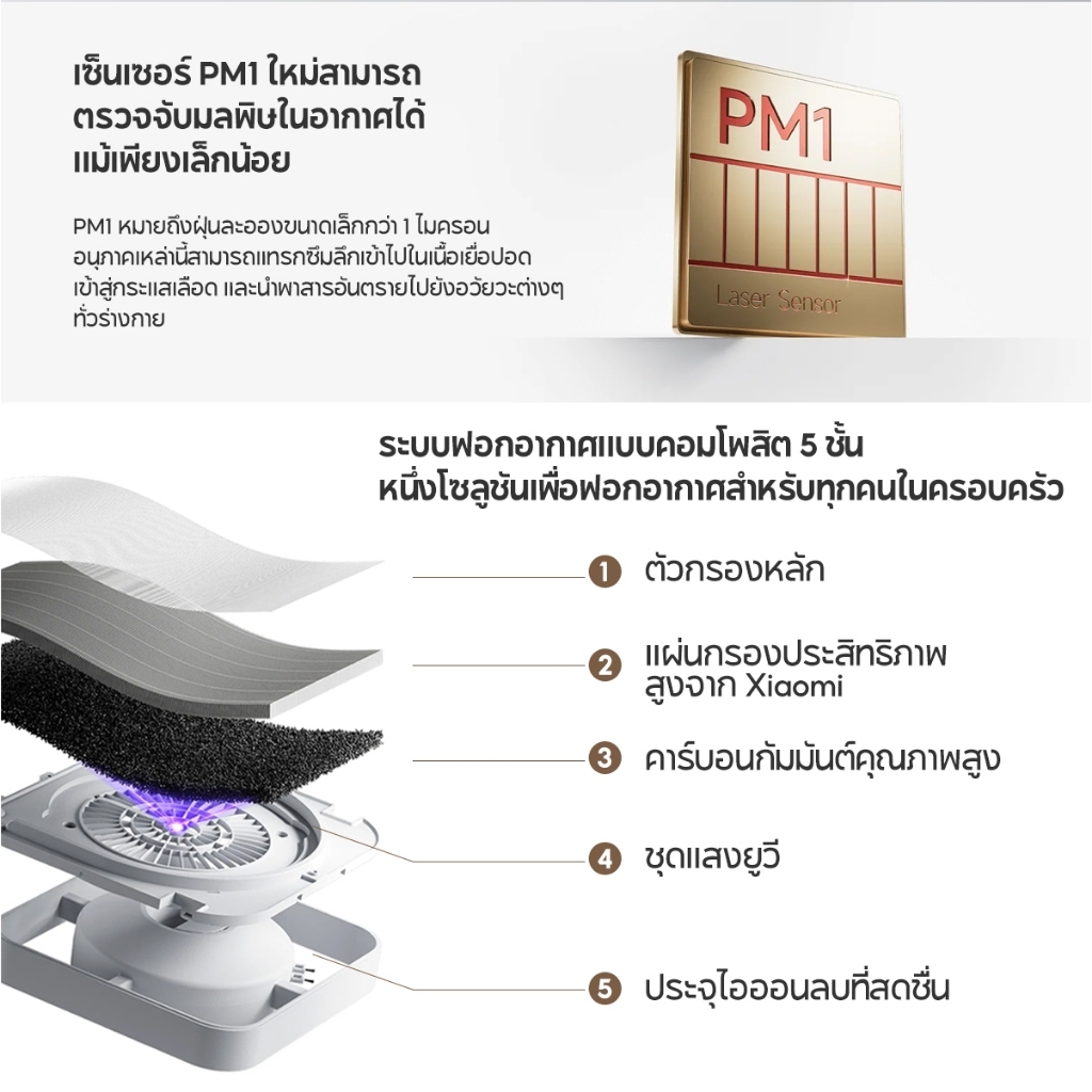 (รับประกันศูนย์ไทย) Xiaomi Mijia Smart Air Purifier 6 เครื่องฟอกอากาศ เซ็นเซอร์ตรวจจับฝุ่นละออง ระบบคอมโพสิต 5 ชั้น-1Y