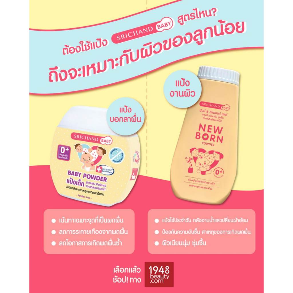 SRICHAND ศรีจันทร์ เบบี้ แป้งเด็ก แชมพู สบู่เหลว ครีมอาบน้ำเด็ก สำหรับเด็ก