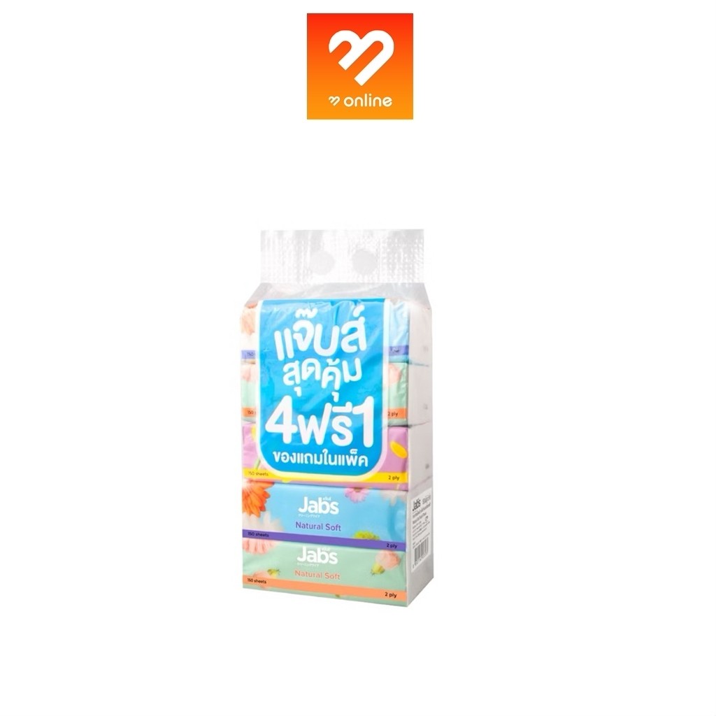 (แพ็ค 5 ห่อ) Jabs แจ๊บส์ ทิชชู่ซอฟท์แพ็ค 2ชั้น 150 แผ่น
