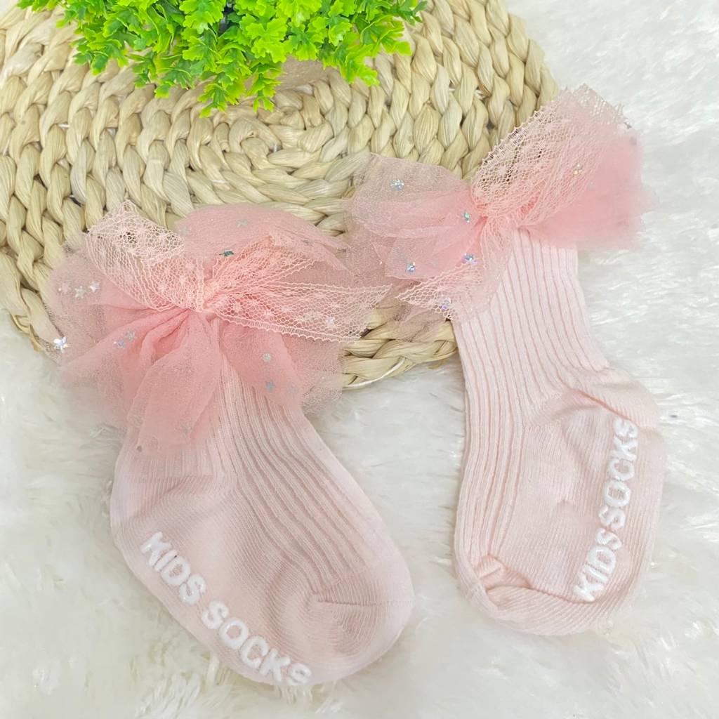 ถุงเท้าเด็ก (Sk94) - ถุงเท้าเด็ก สีชมพูฟรุ้งฟริ้งน่ารัก