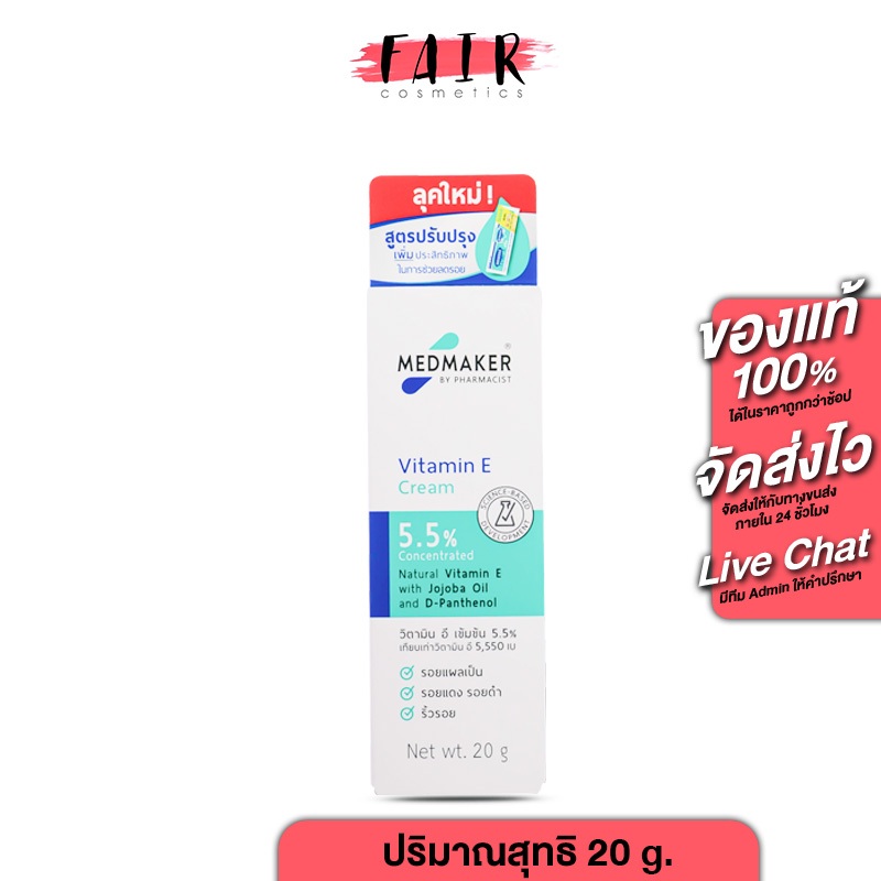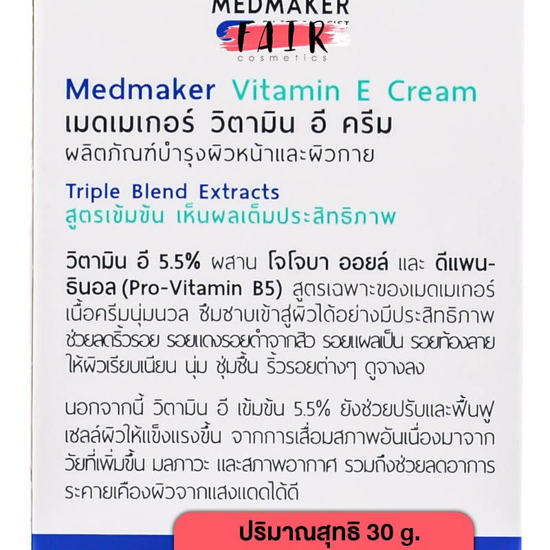Medmaker Vitamin E Cream เมดเมเกอร์ วิตามิน อี ครีม [20,50 g.] ผลิตภัณฑ์บำรุงหน้าและผิวกาย สูตรเข็มข้น