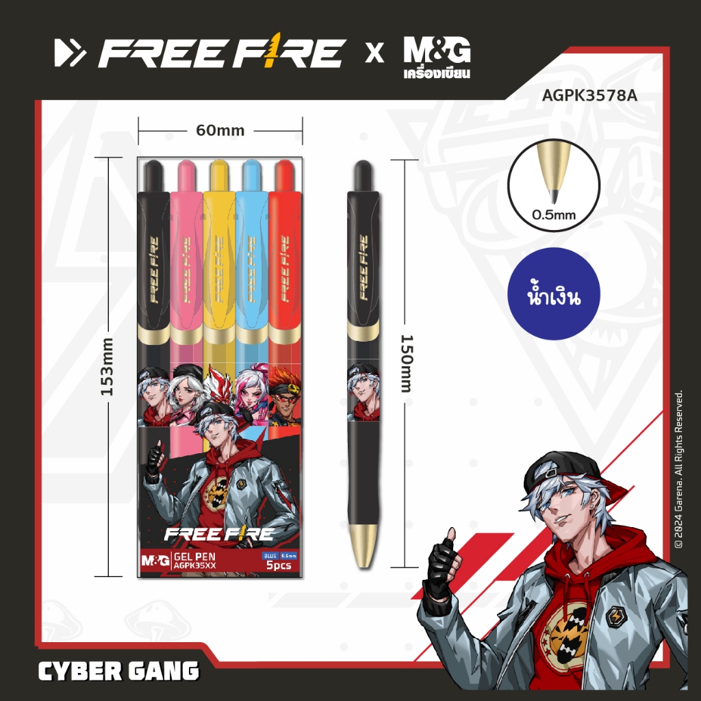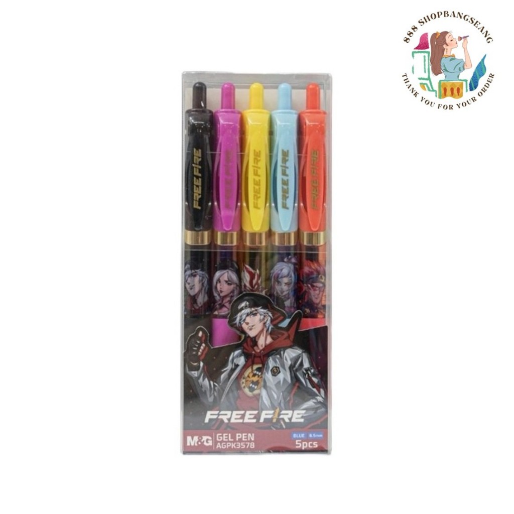 (แพ็ค/5ด้าม) ปากกาเจล หมึกสีน้ำเงิน 0.5มม. M&G Free Fire AGPK3578