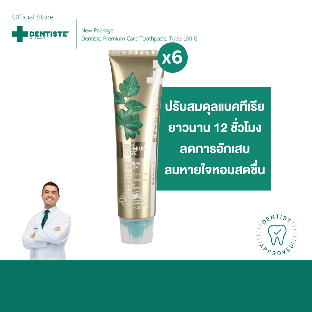 [แพ็ค 6] Dentiste' Premium Care Toothpaste Tube ยาสีฟันสูตรพรีเมี่ยมแคร์ ปรับสมดุลแบคทีเรีย หลอด 100กรัม เดนทิสเต้