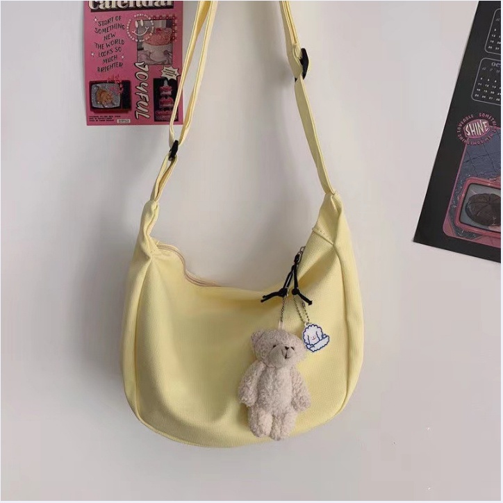 Anastasia กระเป๋าสะพายข้าง ผ้าไนล่อน สไตล์เกาหลี มีพวงกุญแจน่ารัก