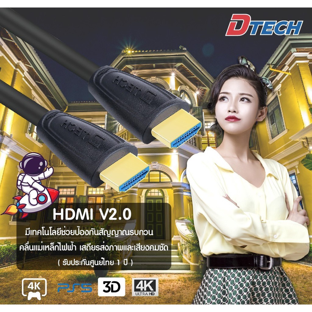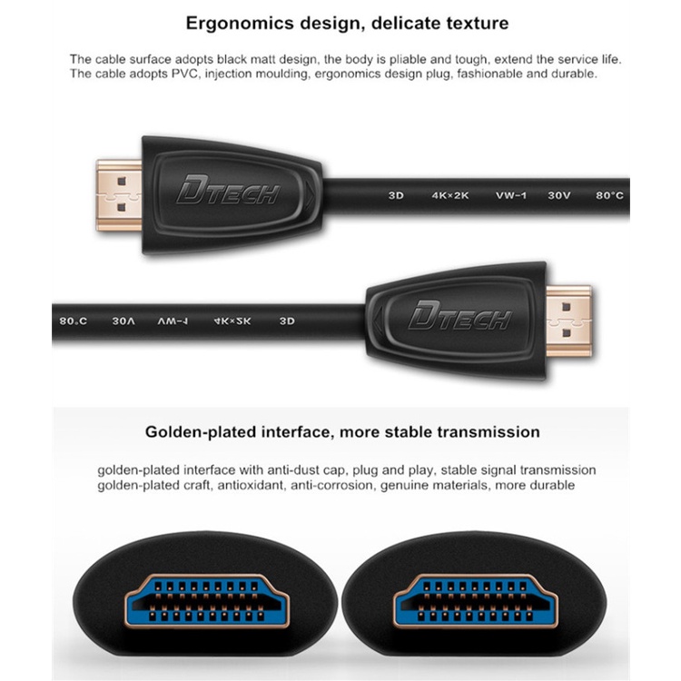 Dtech DT-H004 (2M) & H006 (5M) Cable V2.0 M/M สายสัญญาณอุปกรณ์ ขั้วต่อทองแดงชุปทอง 24K รองรับ 4K ประกัน 1 ปี.