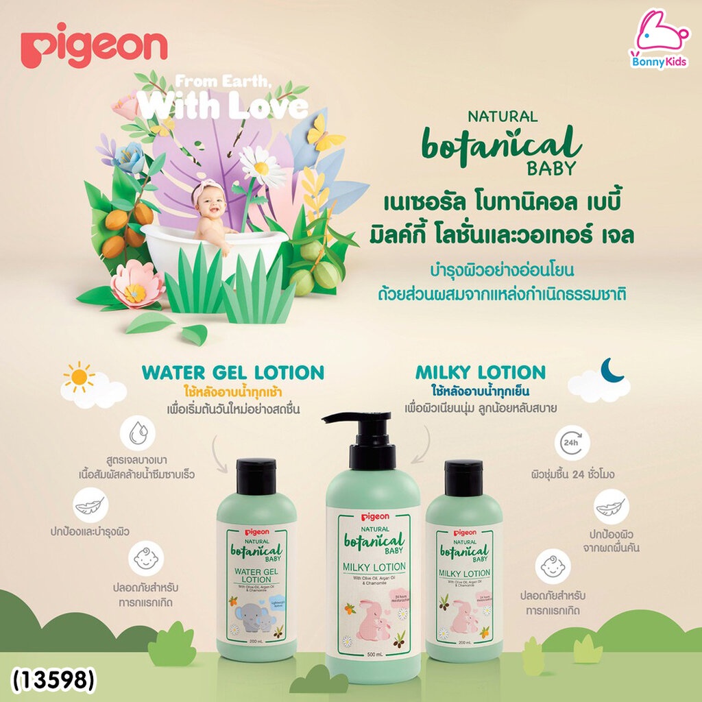 (13598) Pigeon (พีเจ้น) Natural Botanical Baby Milky Lotion โลชั่นน้ำนมบำรุงผิว (ขนาด 200 ml.)