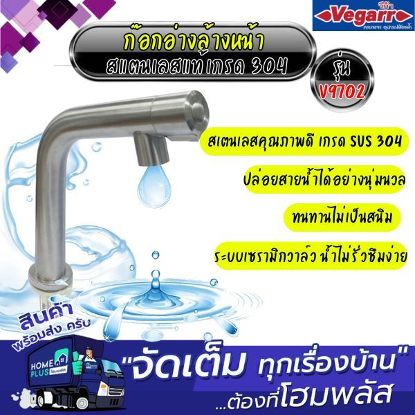 VEGARR ก๊อกอ่างล้างหน้า เกรด 304 V9702
