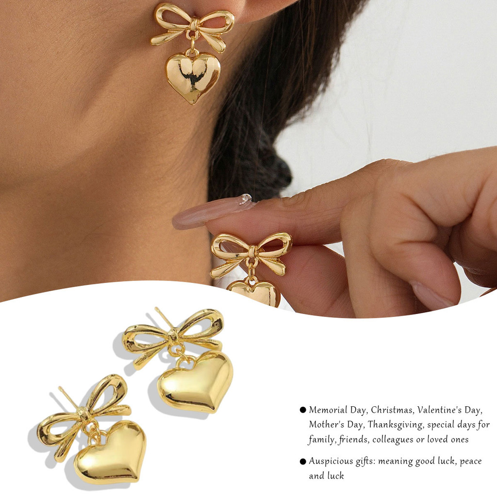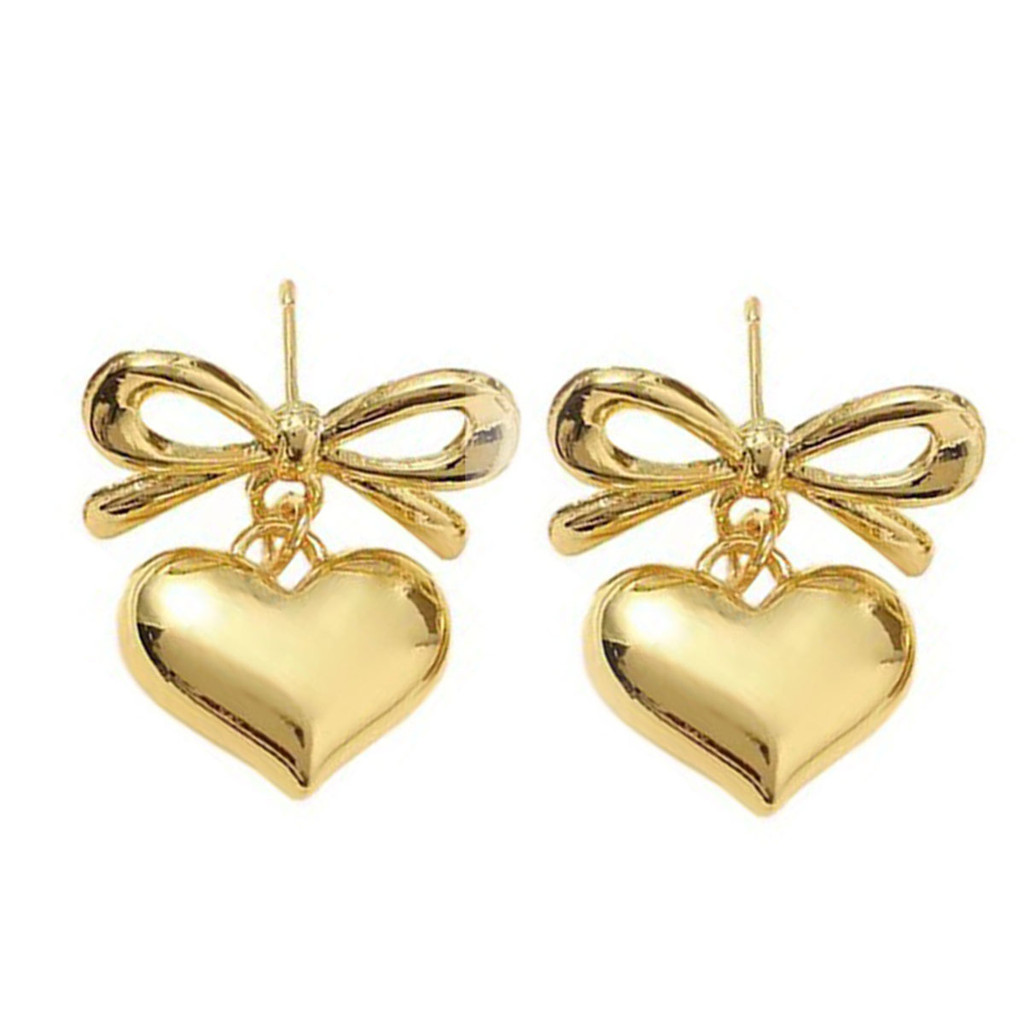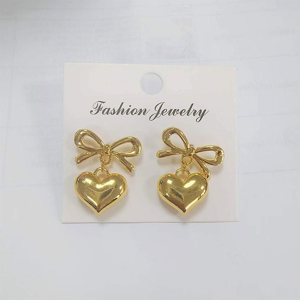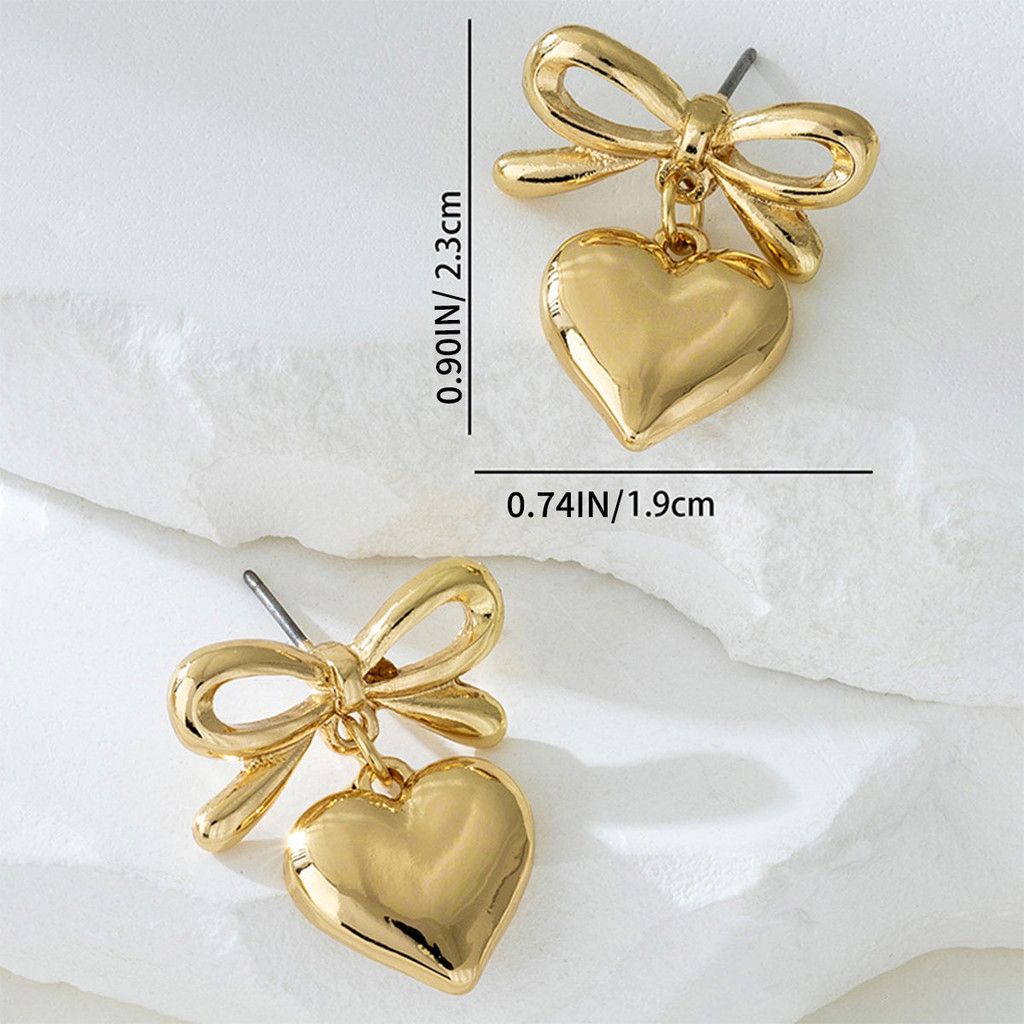 ต่างหูโบว์หัวใจหรูหราสำหรับผู้หญิง ออกแบบทันสมัยเรียบง่าย และละเอียดอ่อน